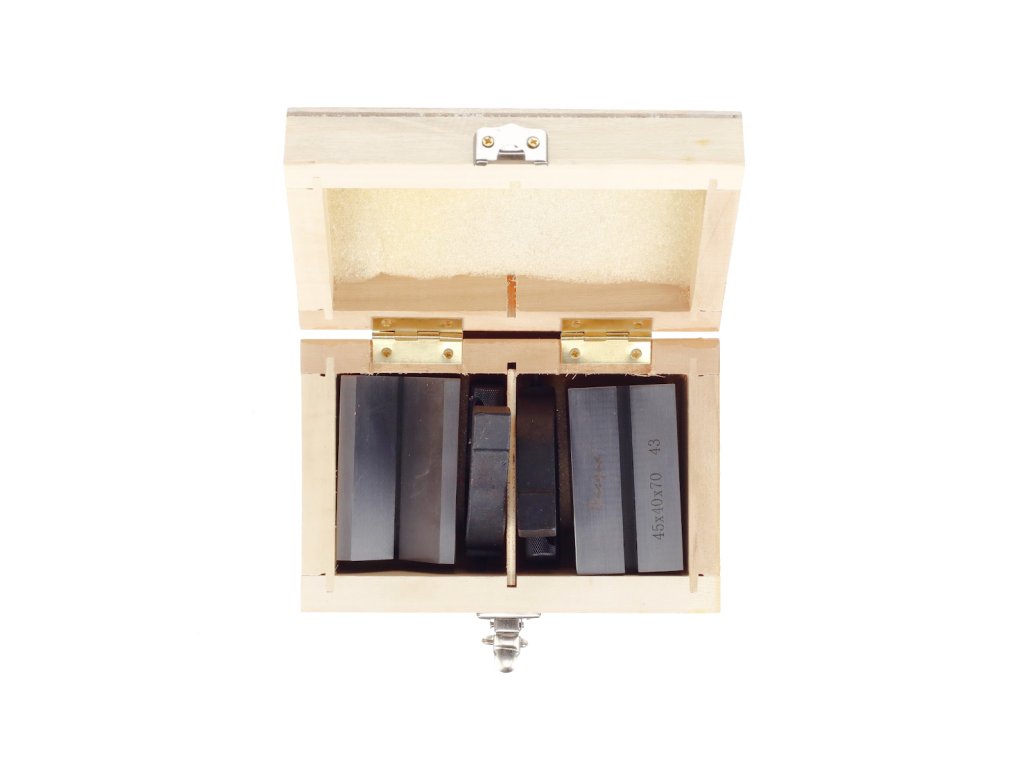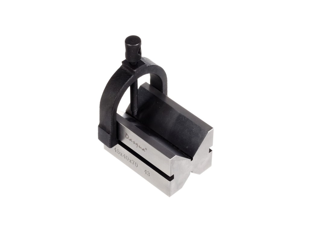 Spannschäkel, Schleifen der Oberfläche der Kontaktflächen, Ebenheit und Parallelität ±0,01 mm. Hergestellt aus gehärtetem Stahl. 90° Nutwinkel, Abmessungen 40 × 45 × 70 mm, Klemmdurchmesser bis 32 mm. Paarweise geliefert.