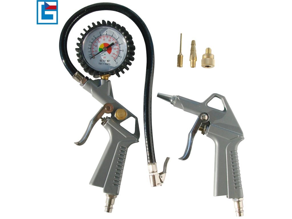 Zubehör: Luftpistole, Reifenfüller, Spiralschlauch 5 m, Adapter zum Aufpumpen von Bällen/Matratzen/Reifen.