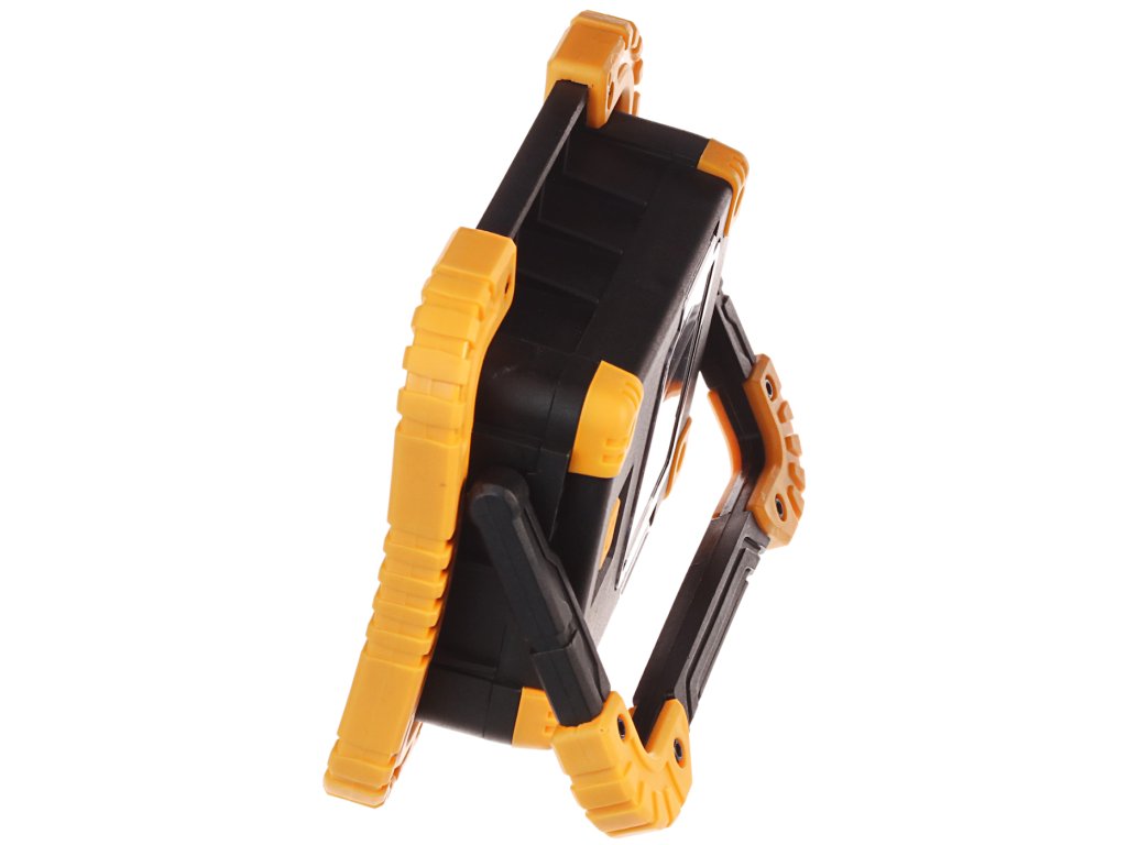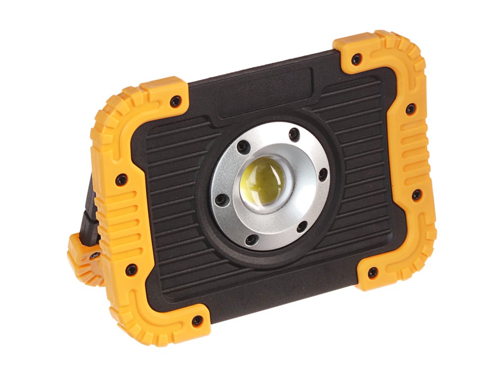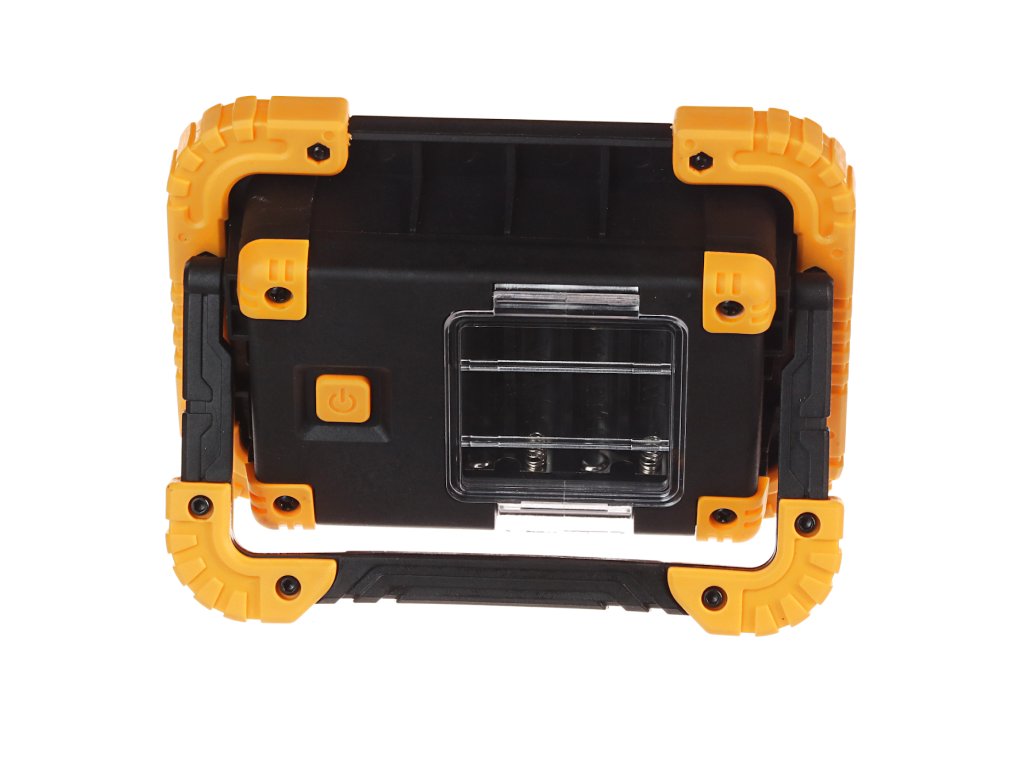 Modernes, dünnes Design mit Beschädigungsschutzelementen und Stütze, superhelle COB-LED, Farbwiedergabeindex (CRI) 80. Die Leuchte wird durch vier AA-Batterien versorgt, Strahlwasserschutz.