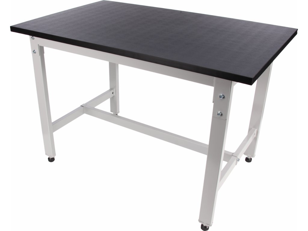 Leichter und fester Arbeitstisch aus Metallprofilen, hochwertige Arbeitsplatte und Nivellierfüße. Material Platte – MDF 25 mm + 2 mm PVC.