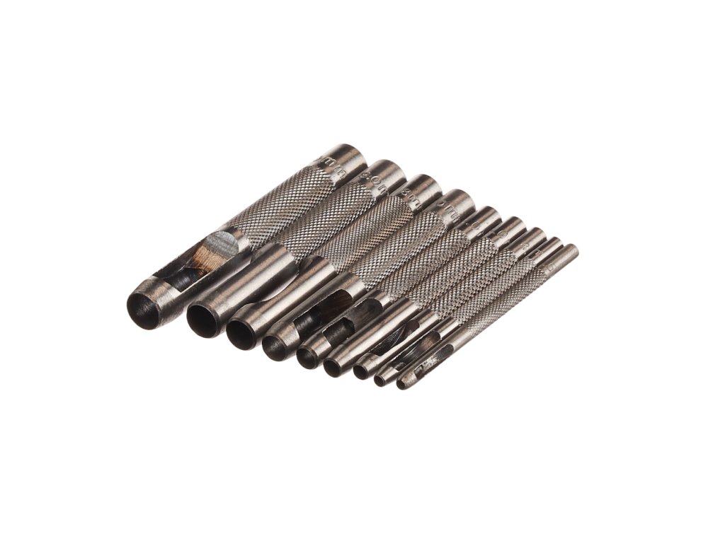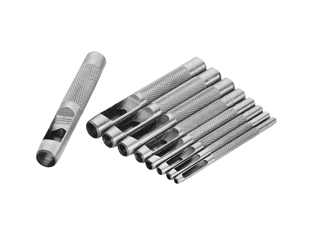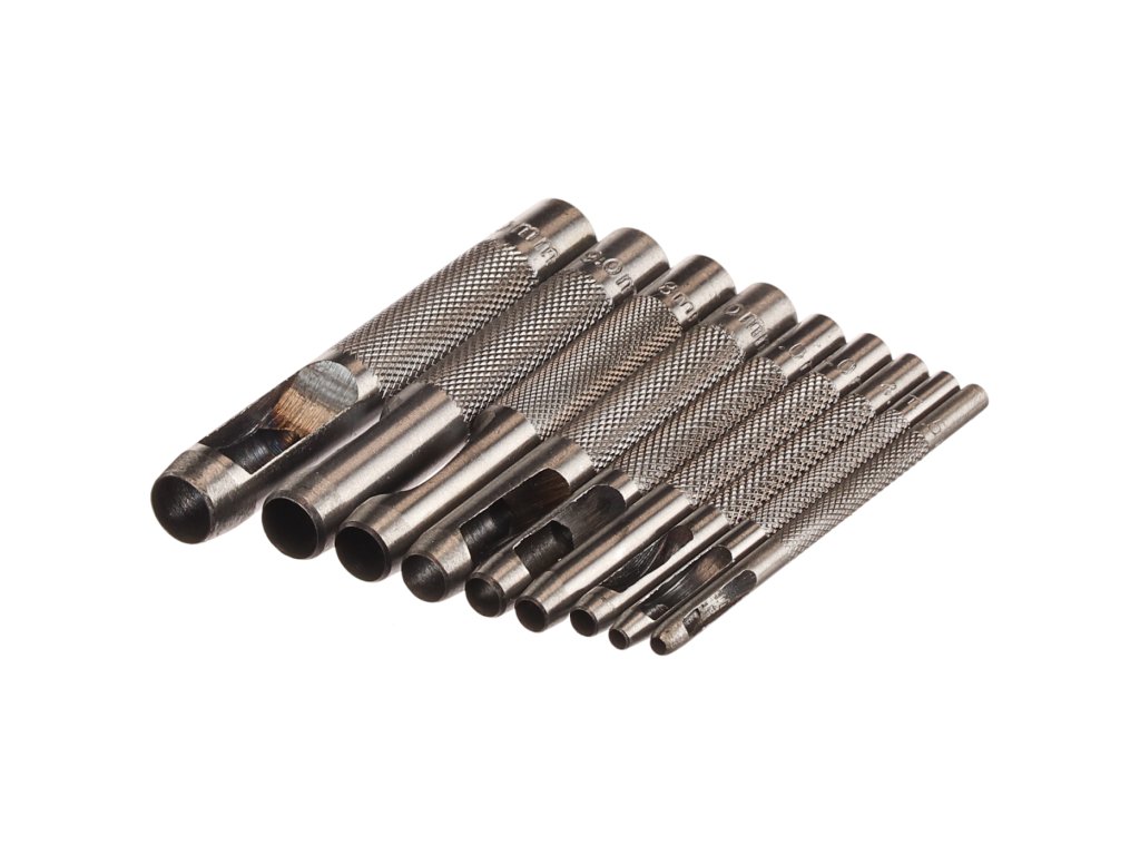 Zum Ausstanzen von Löchern in Leder, Gummi, usw. geeignet. Ø 2,5; 3; 4; 5; 6; 7; 8; 9 und 10 mm. Material: Kohlenstoffstahl, gehärtet.