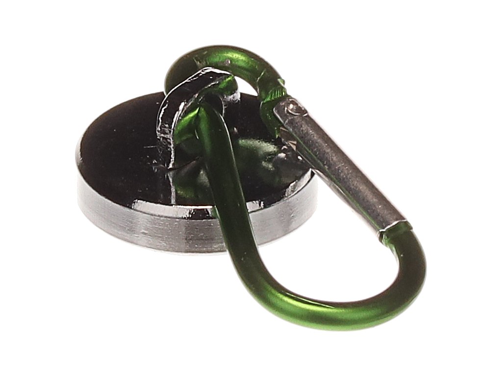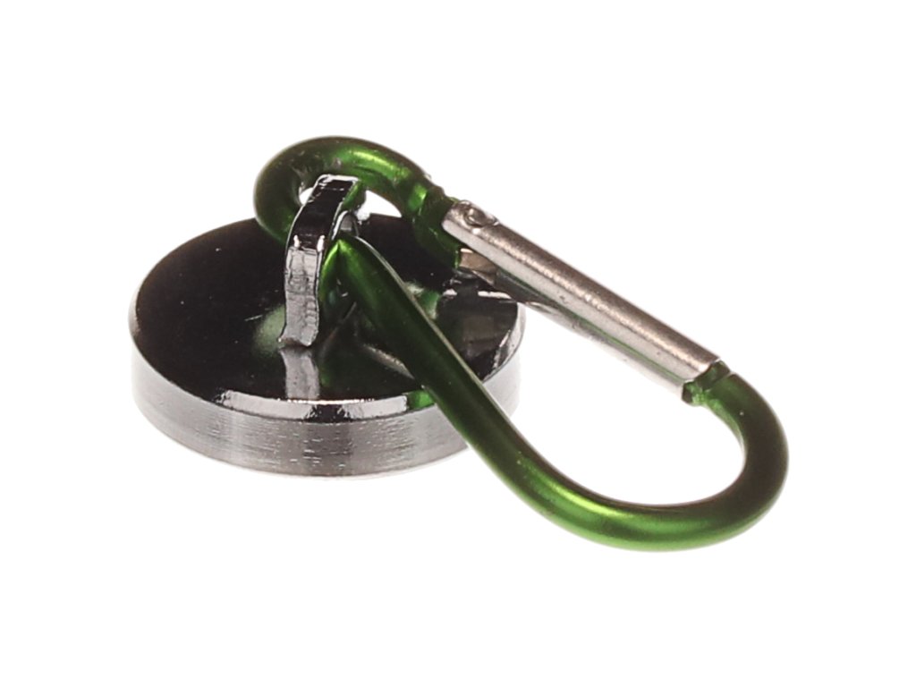 Starker Magnethalter mit einem Befestigungsring und Karabiner. Zum Aufhängen von Schlüsseln in Lagern oder Geschäften geeignet. Kratzfest.