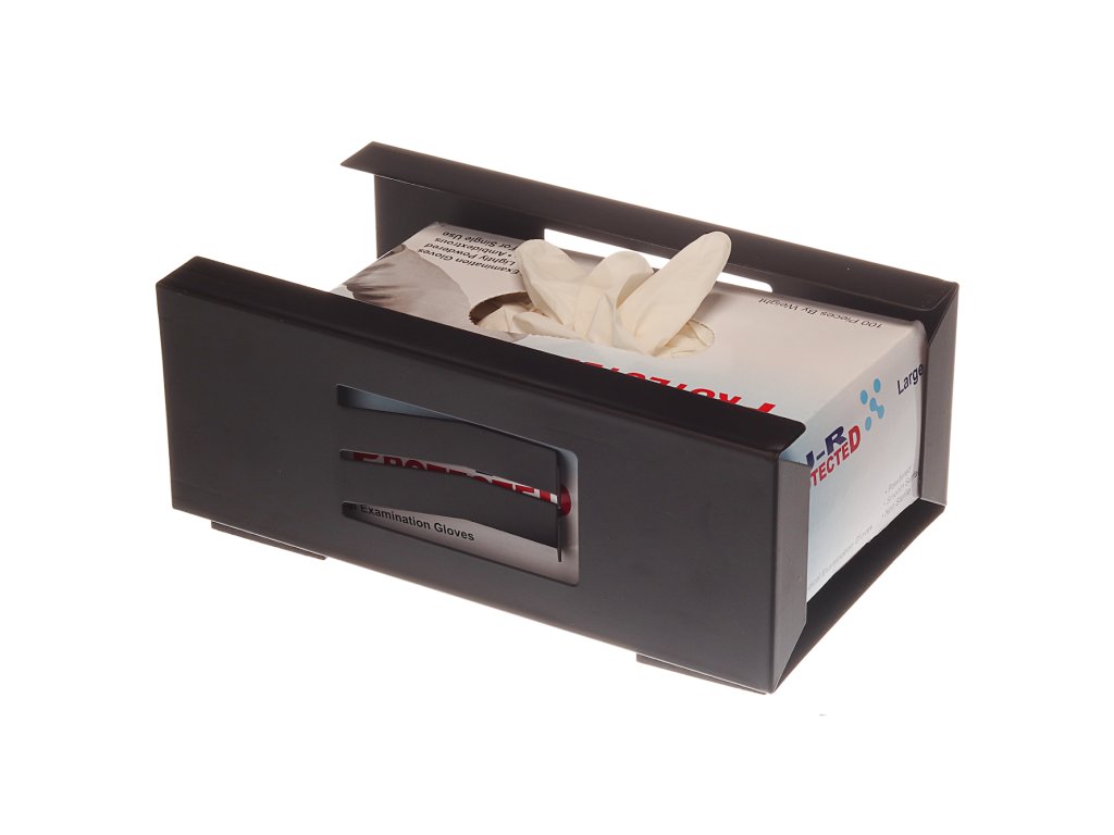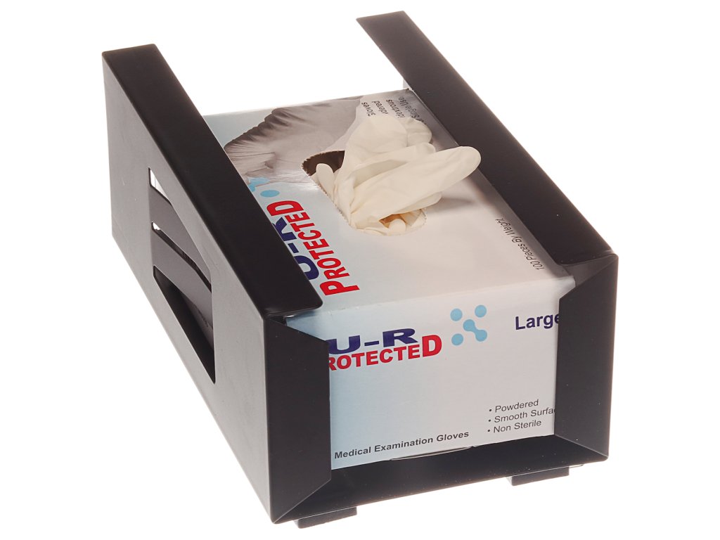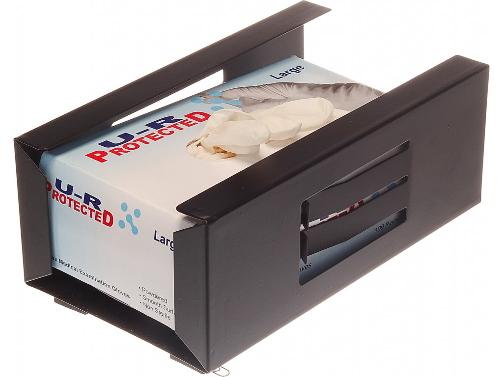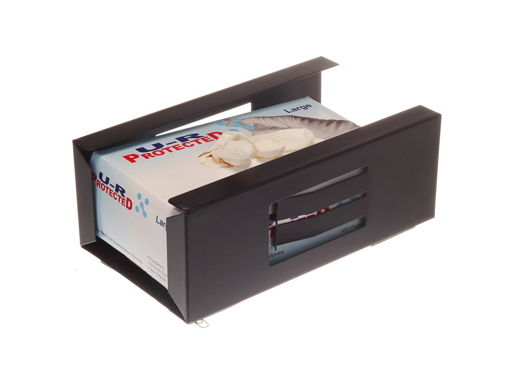 Praktischer Spender für Einweg-Arbeitshandschuhe. Mit Magneten zur Befestigung auf Metalloberflächen. Material: Pulverbeschichtetes Stahlblech. Abmessungen: 253 × 143 × 95 mm. Tragfähigkeit 3,6 kg.