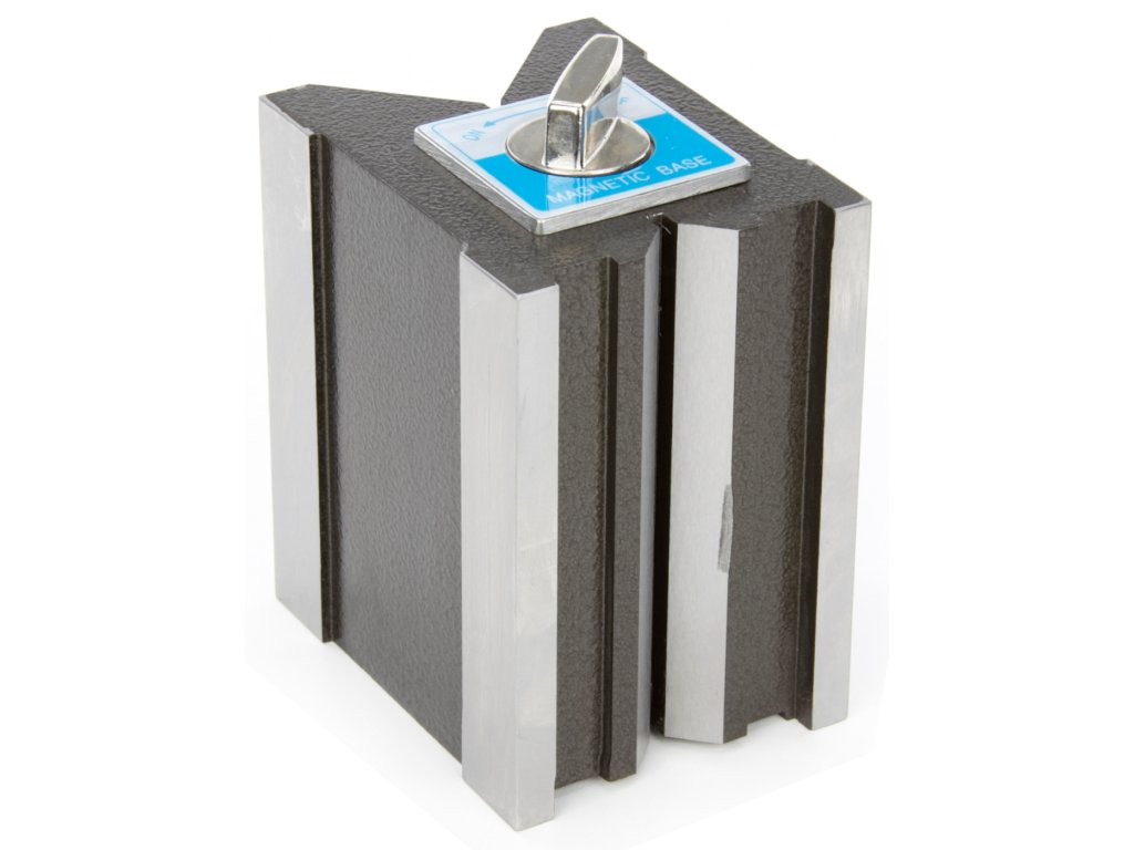 Zur sicheren Teileaufnahme mit ferromagnetischen Kraft, z.B. beim Längsschneiden, Bohren oder Gewindeschneiden usw... Das Werkstück oder der gemessene Gegenstand kann durch einen leistungsfähigen Magnet und eine Prismabacke mit beliebiger von den drei Seiten zum magnetischen Tisch fixiert werden. Die Magnetleistung kann einfach mit einem Schalter geändert werden. Abmessungen 115 × 75 × 100 mm.