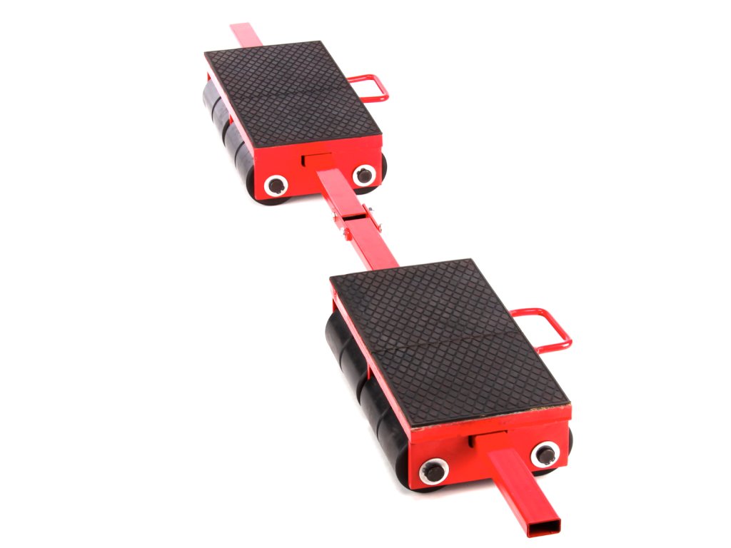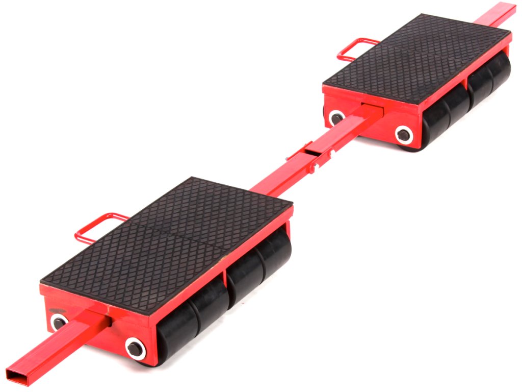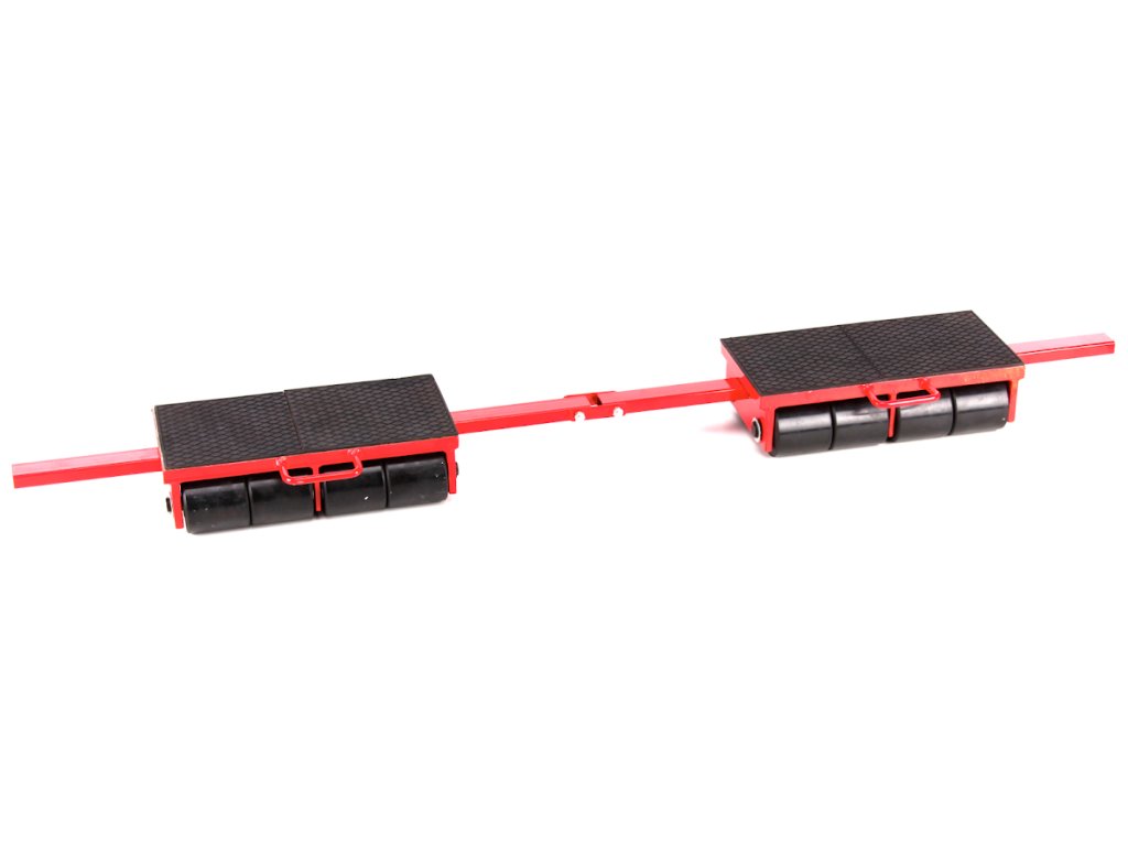 Manipulationsplattform mit Tragfläche 203 × 400 mm, mit 8 gummierten Rollen ø 85 × 85 mm und Manipulationsöse ausgestattet. Die Nennlast 18 t kann durch Wagenverbinden mit der Verbindungsstange im Abstand 800 – 1 600 mm vervielfacht werden.