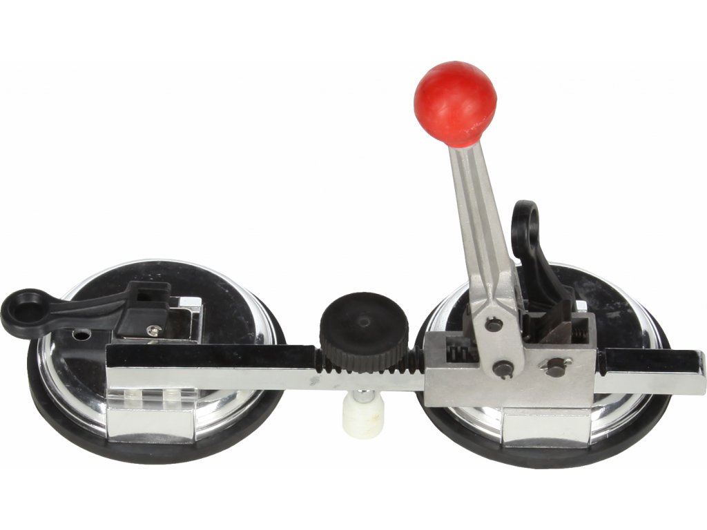 Satz von 2 Saugern mit Knarre zum Ausrichten von Glasscheiben beim Verbinden z.B. durch Kleben. Saugertragfähigkeit 80 kg, Durchmesser 118 mm.
