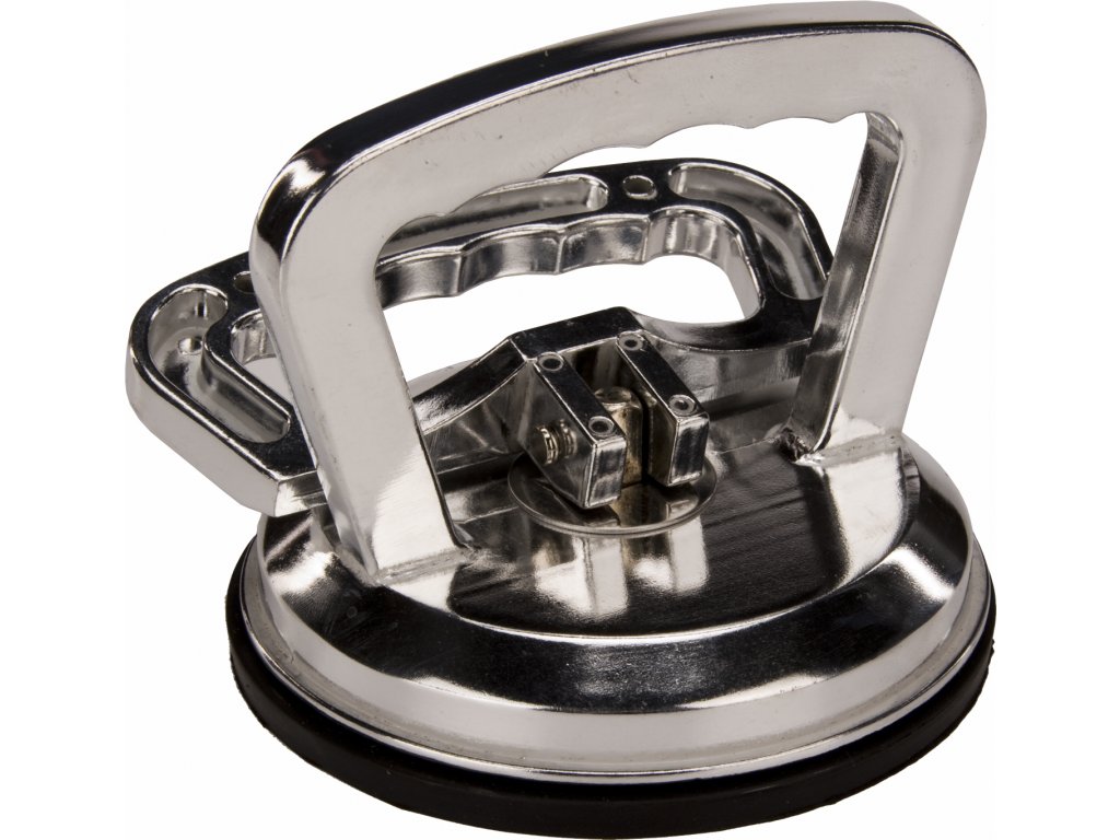 Sauger mit einer Schale mit 118 mm-ø, max. Spannkraft auf die Saugerfläche 60 kg (in vertikaler Stellung 50 kg), aus Aluguß und Gummi hergestellt.
