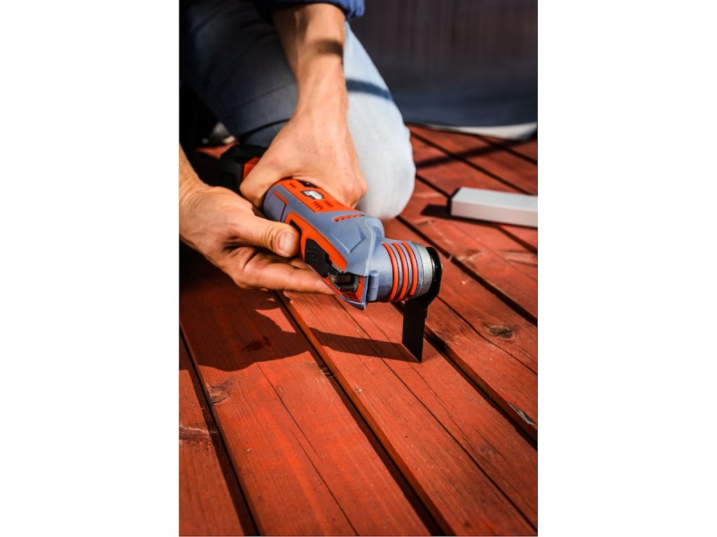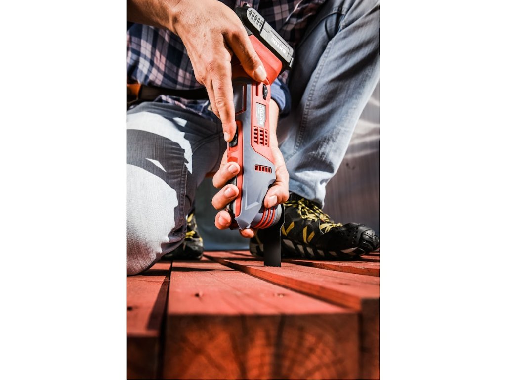 Der Akku-Multifunktionsschleifer ist für das Trennen und Trennen von Holzwerkstoffen, Kunststoffen, Trockenbauwänden und Weichmetallen (z.B. Kupfer, Aluminium, ungehärtete Nägel, Weichmetalllegierungen) sowie zum Raspeln, Schleifen und Schaben kleinerer Flächen konzipiert. Das Werkzeug ermöglicht es Ihnen, präzise Arbeiten an schwer zugänglichen Stellen durchzuführen, z. B. Ausschnitte in den Ecken von Möbeln, Fliesen usw. Sein Hauptvorteil ist der Akkuantrieb, der es Ihnen ermöglicht, die Mühle überall hin mitzunehmen, wo Sie mit ihr arbeiten müssen, unabhängig davon, ob es eine Stromverteilung gibt. Für normales Arbeiten reichen ein bis zwei 2000 mAh Akkus, die Sie in einem Schnellladegerät schnell aufladen können, für anspruchsvollere oder längere Arbeiten empfehlen wir größere Akkus mit einer Kapazität von 4000 mAh. Der Akku kann in allen Arten von EXTOL SHARE20 V-Werkzeugen verwendet werden und kann dank der verwendeten Li-Ionen-Technologie jederzeit wieder aufgeladen werden, ohne seine Kapazität zu verringern. Der Li-Ionen-Akku verliert durch Selbstentladung sehr langsam Energie und bleibt lange geladen und einsatzbereit.