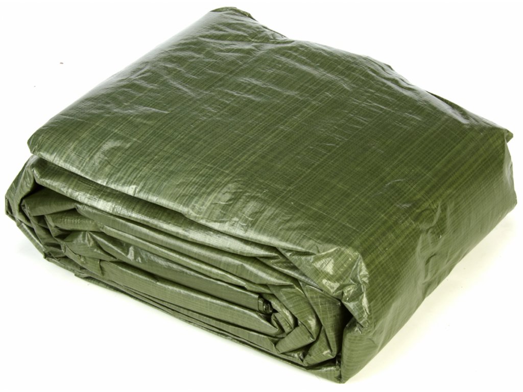 Wasserdichte, zweifarbige PE-Plane, 150 g/m², blau und grün, mit Alu-Ösen zum Befestigen am Rand.