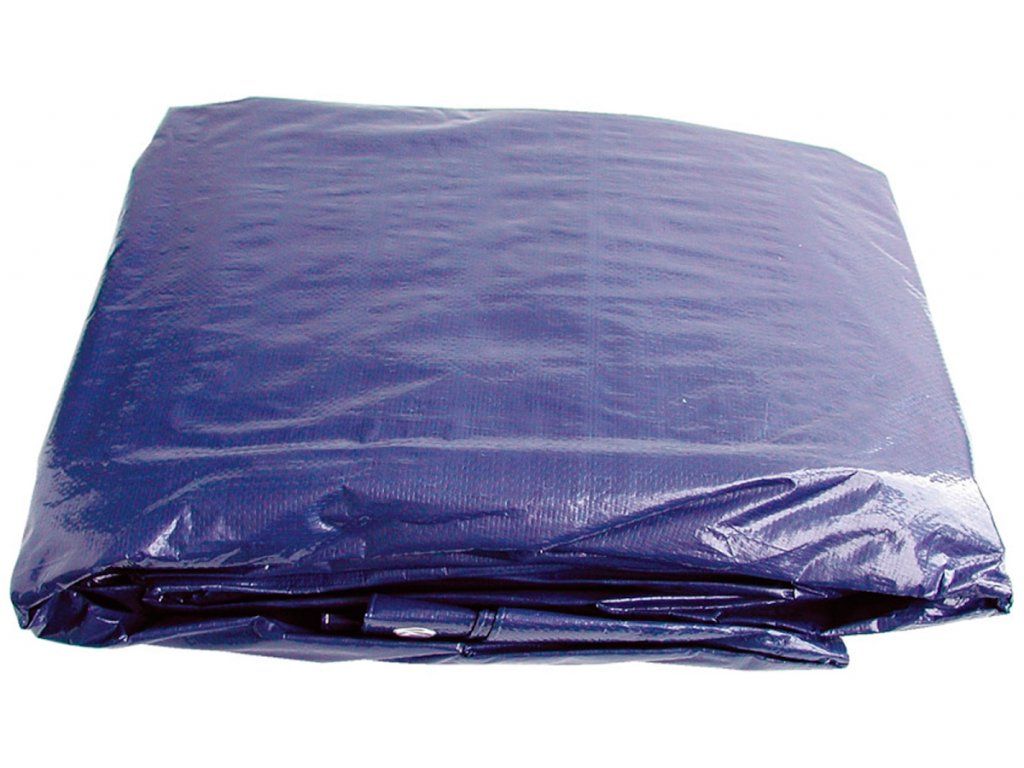Wasserdichte, zweifarbige PE-Plane, 150 g/m², blau und grün, mit Alu-Ösen zum Befestigen am Rand.