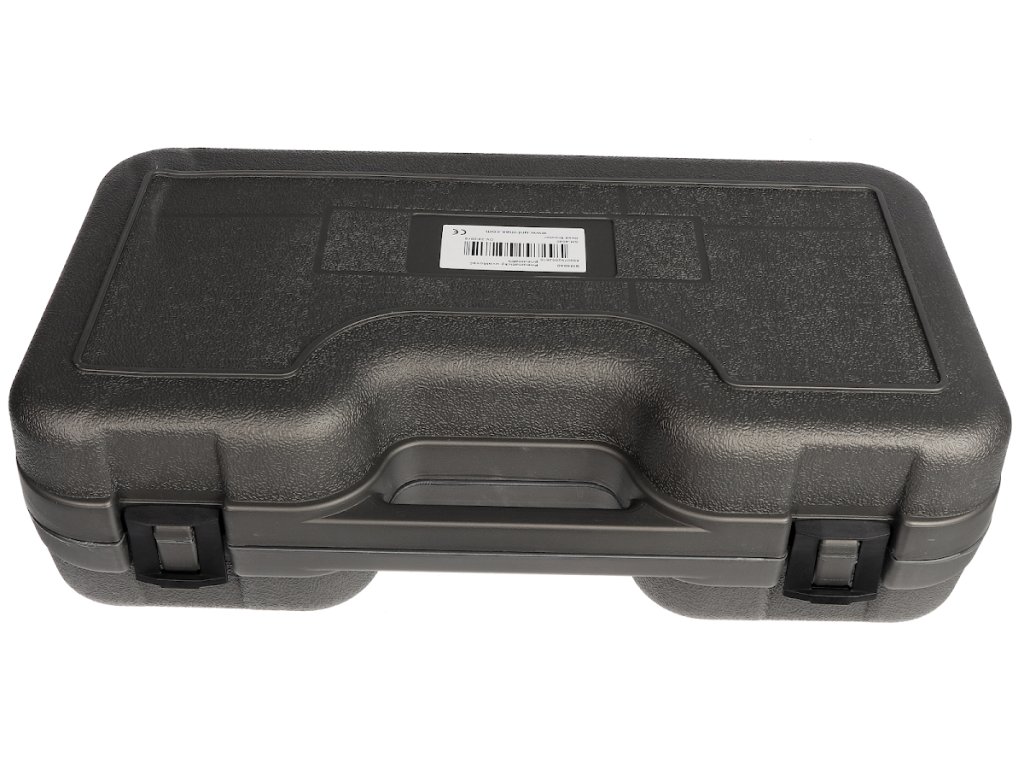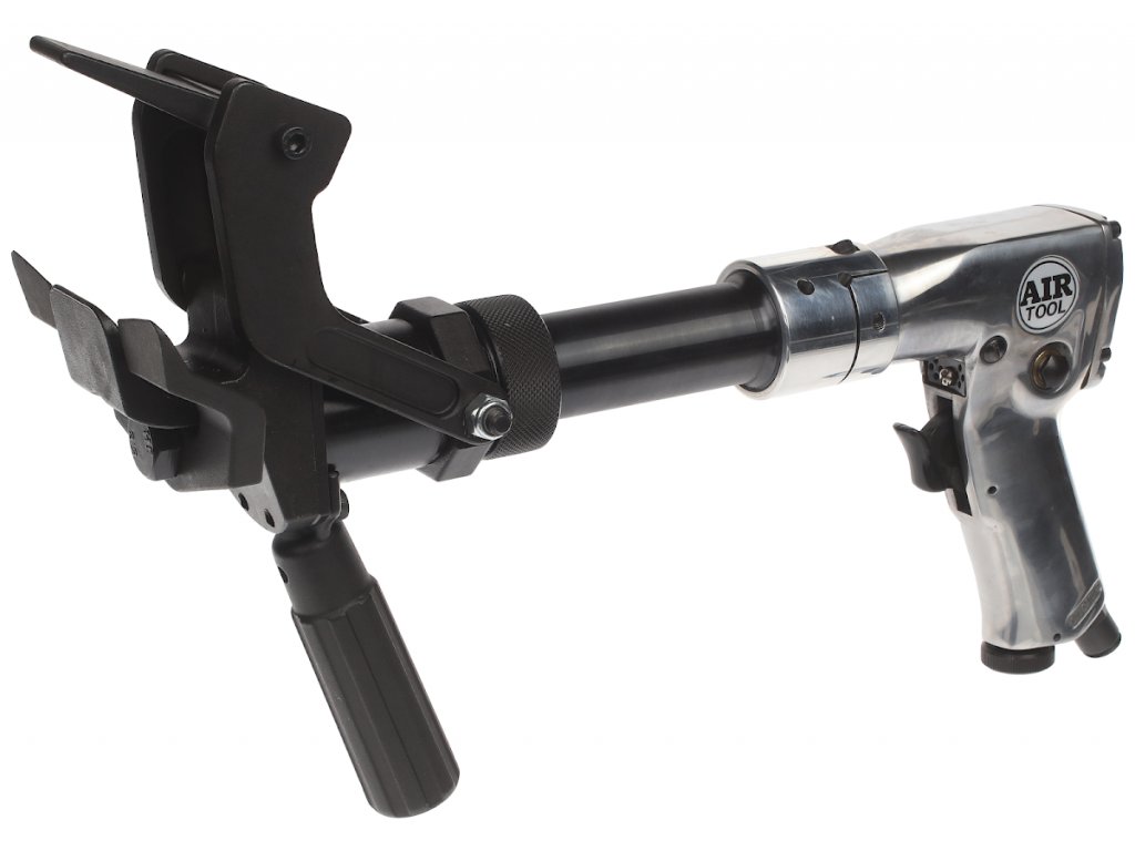 Vereinfacht das Abziehen des Reifens von der Felge. Lkws, Traktoren und Baumaschinen geeignet. Backenbreite 68 mm, max. Spreizung 80 mm, Arbeitsdruck 6,2 bar, durchschnittlicher Luftverbrauch 113 l/min., Anschluss 1/4" NPT, Gesamtlänge 380 mm, in einem Kunststoffkoffer aufbewahrt.