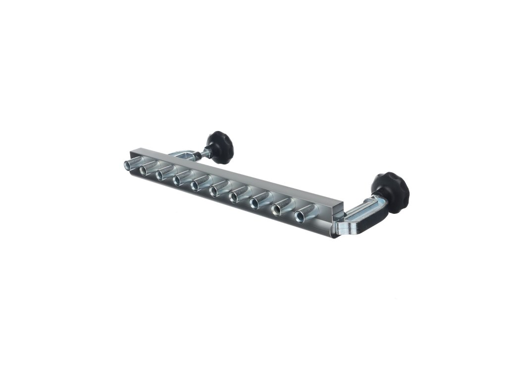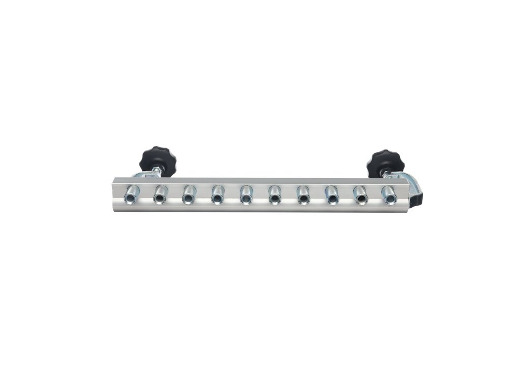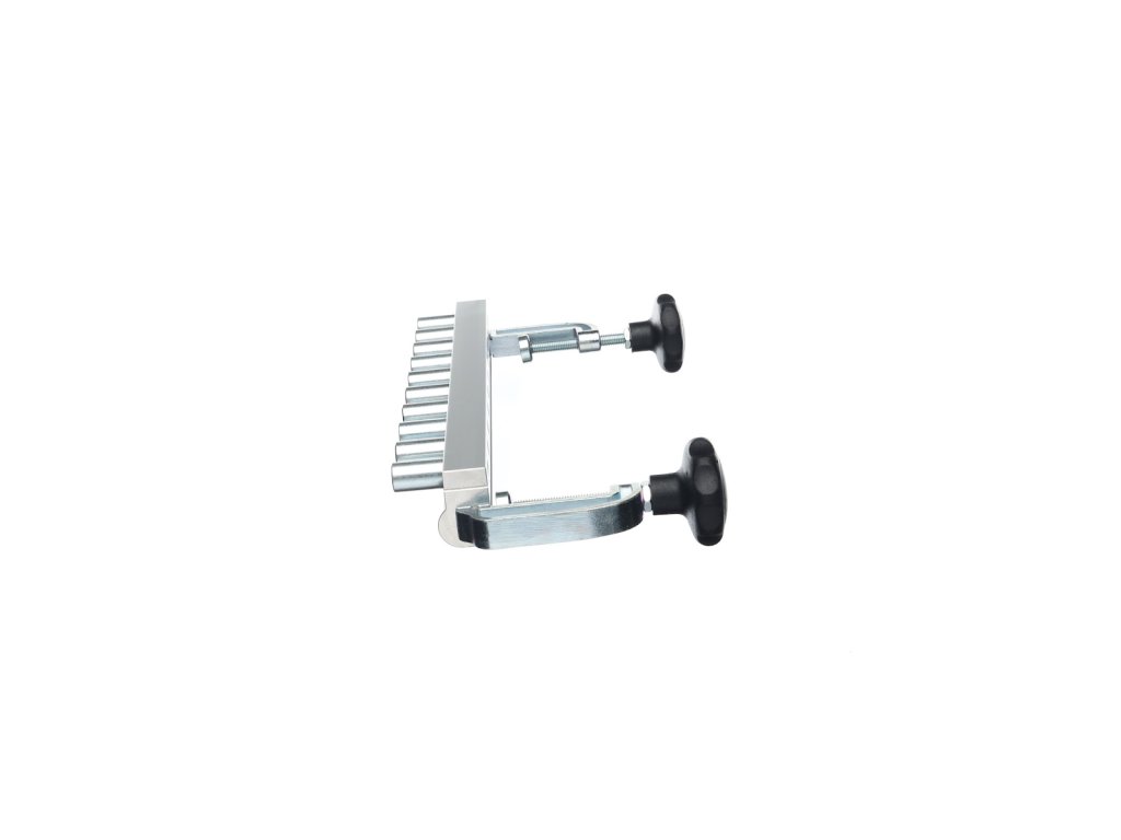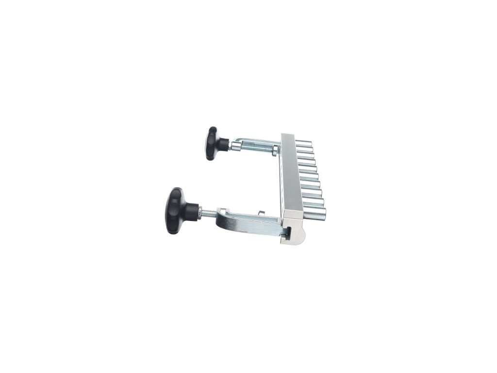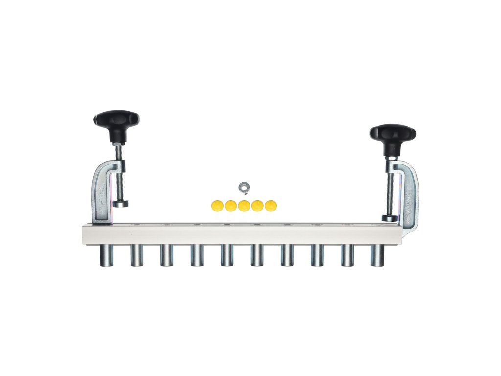 Tiefenanschlag neu KOSTENLOS - in jedem Lieferumfang enthalten. Einzüge zum Abdecken der nichtbenutzten Buchsen für eine einfachere Orientierung und höhere Produktivität (neu KOSTENLOS in der Grundanlieferung). An der Kante von der Vorrichtung ist ein Strich in der Achse der Bohrbuchsen für ein einfaches Ausrichten der Vorrichtung. Seitenanschlag für einfaches Einpassen mit der Plattenkante ist Bestandteil eines Schraubstockes! (kann mit einer Schraube befestigt werden - dann entfällt das Anpassen des Anschlages bei jedem Spannen). Das Gehäuse aus einem vergrößerten massiven Profil gewährleistet eine erhöhte Steifigkeit gegenüber den Modellen der Wettbewerber. Besonders bei der Arbeit mit massivem Material schätzen Sie die Möglichkeit der Vorrichtungsaufnahme auf Platten bis 35 mm Stärke!!!
