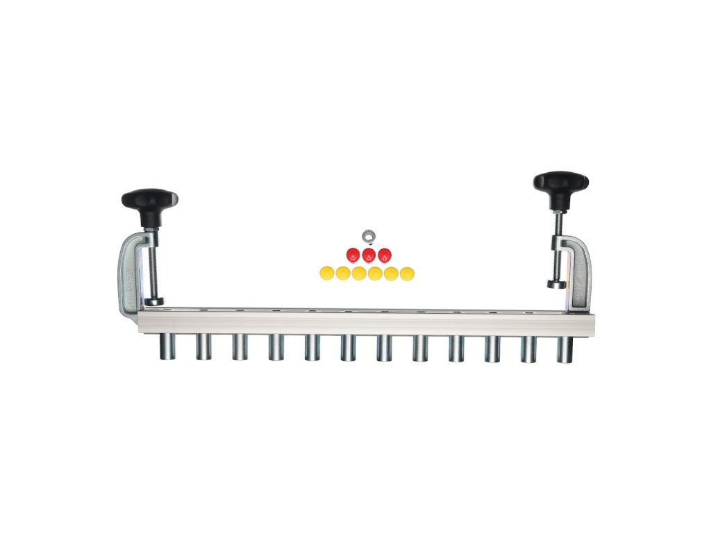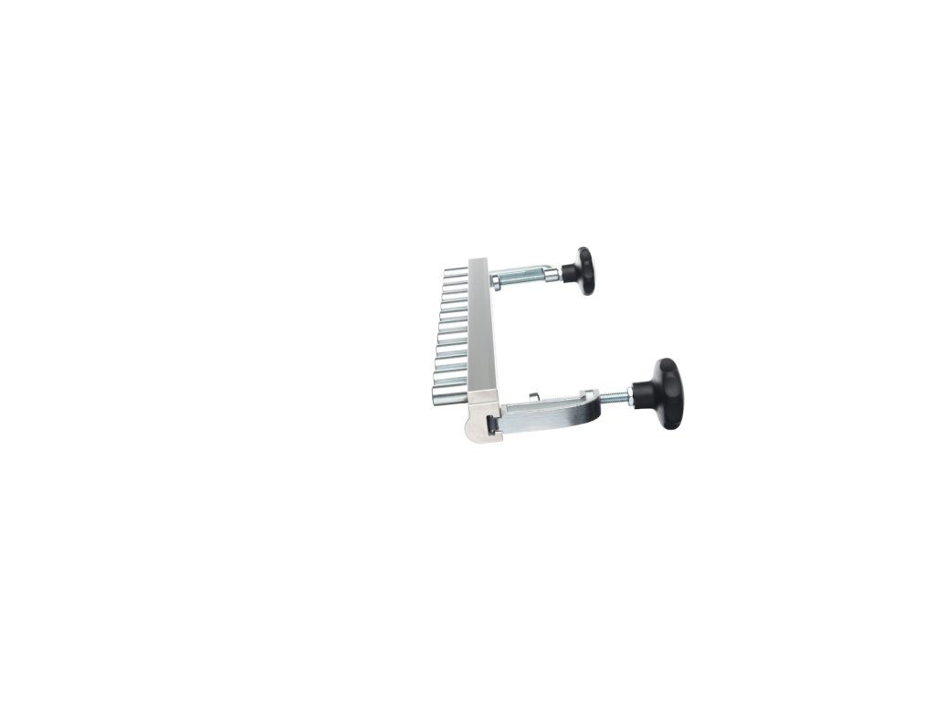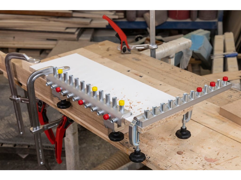 Tiefenanschlag neu KOSTENLOS - in jedem Lieferumfang enthalten. Einzüge zum Abdecken der nichtbenutzten Buchsen für eine einfachere Orientierung und höhere Produktivität (neu KOSTENLOS in der Grundanlieferung). An der Kante von der Vorrichtung ist ein Strich in der Achse der Bohrbuchsen für ein einfaches Ausrichten der Vorrichtung. Seitenanschlag für einfaches Einpassen mit der Plattenkante ist Bestandteil eines Schraubstockes! (kann mit einer Schraube befestigt werden - dann entfällt das Anpassen des Anschlages bei jedem Spannen). Das Gehäuse aus einem vergrößerten massiven Profil gewährleistet eine erhöhte Steifigkeit gegenüber den Modellen der Wettbewerber. Besonders bei der Arbeit mit massivem Material schätzen Sie die Möglichkeit der Vorrichtungsaufnahme auf Platten bis 35 mm Stärke!!!