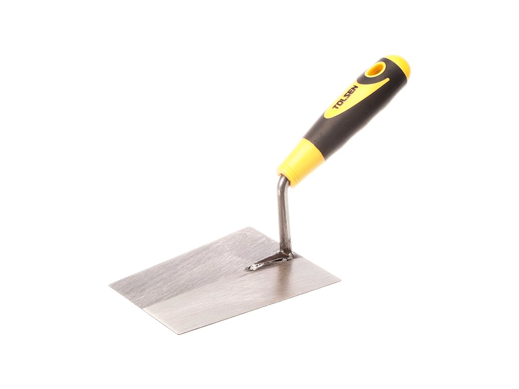 Stahl-Putzkelle mit Kunststoffgriff. Abmessungen: 140 × 85 × 107 mm, Schaft-Ø 9,5 mm.