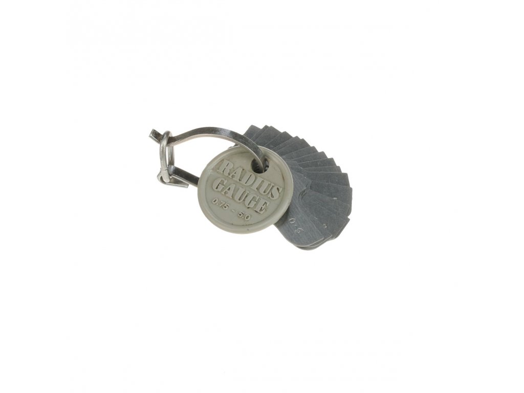 Set von 18 St. Außen- und Innen-Radiuslehren im Bereich von R 0,75 – 5 mm. Im Blister verpackt.