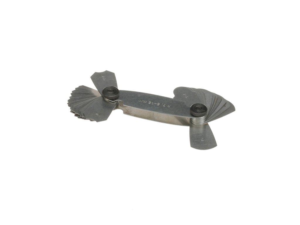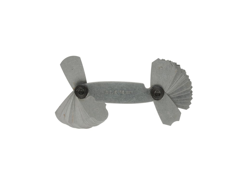 Set von 32 St. Außen- und Innen-Radiuslehren im Bereich von R 7,5 – 15 mm. Im Blister verpackt.