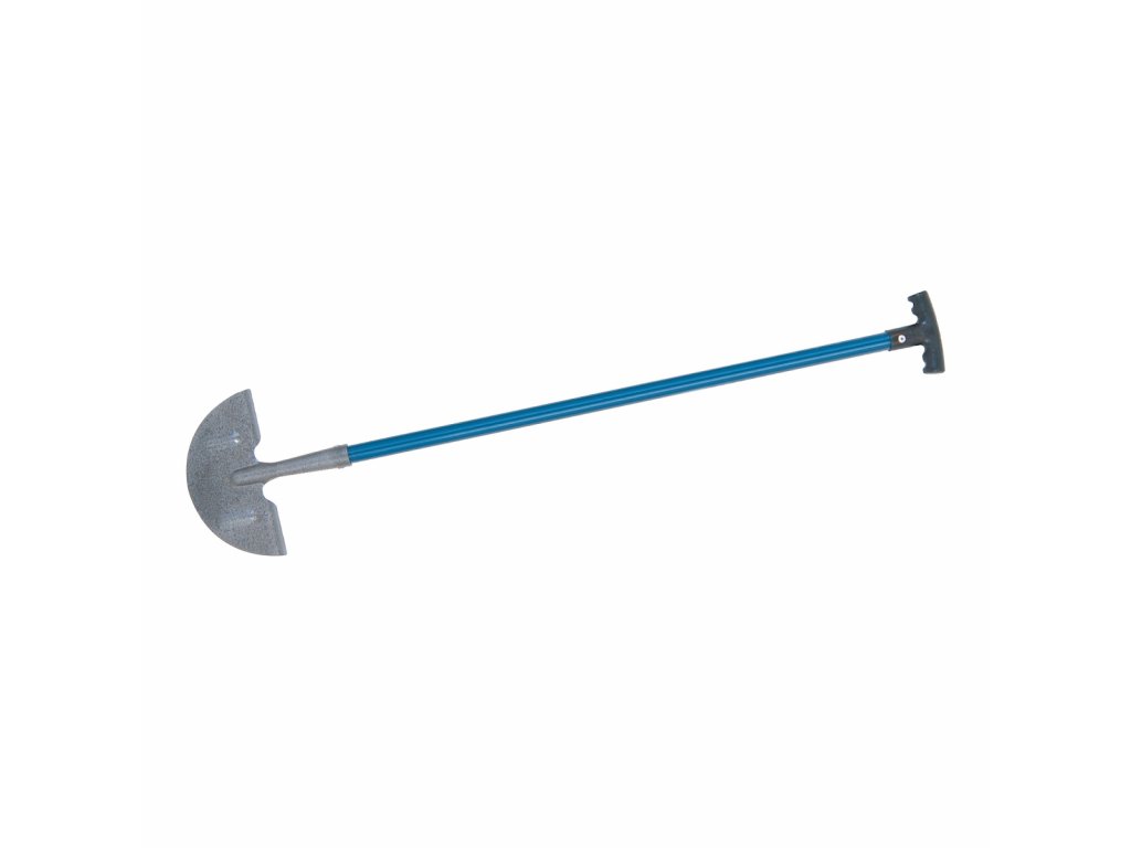 Gestanzter, hochbelastbarer Stahlkopf mit Epoxidbeschichtung für einfache Wartung. Griff aus Stahlrohr mit T-Griff. Halbmondförmige Klinge mit Trittflächen für besseren Fußdruck. Klinge D × B 100 × 220 mm.