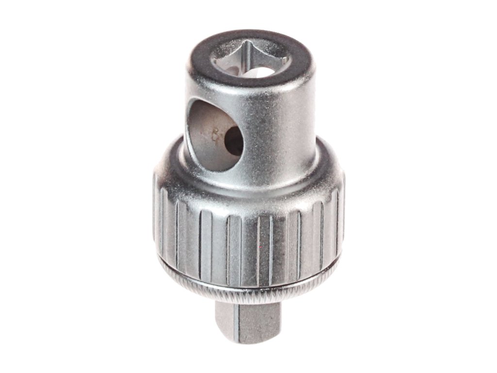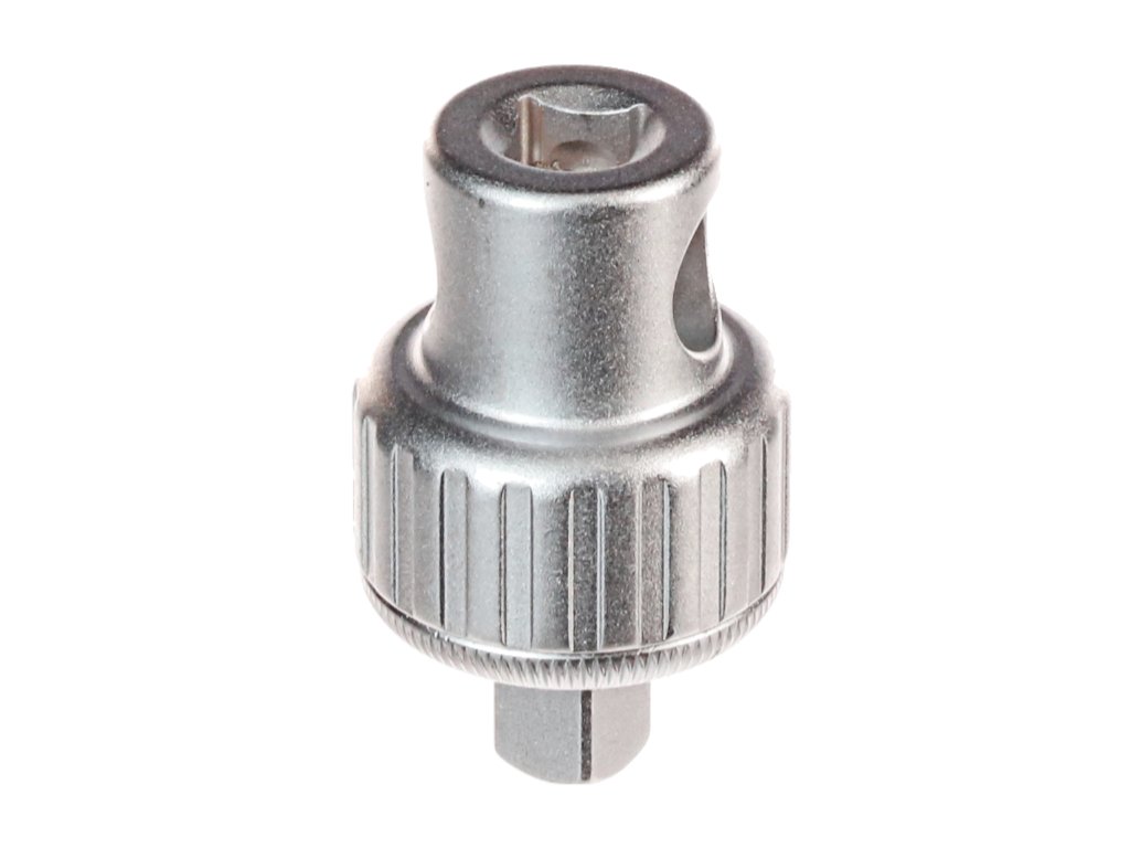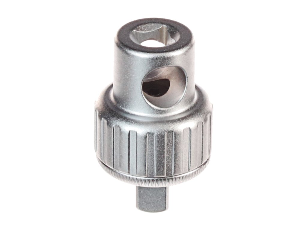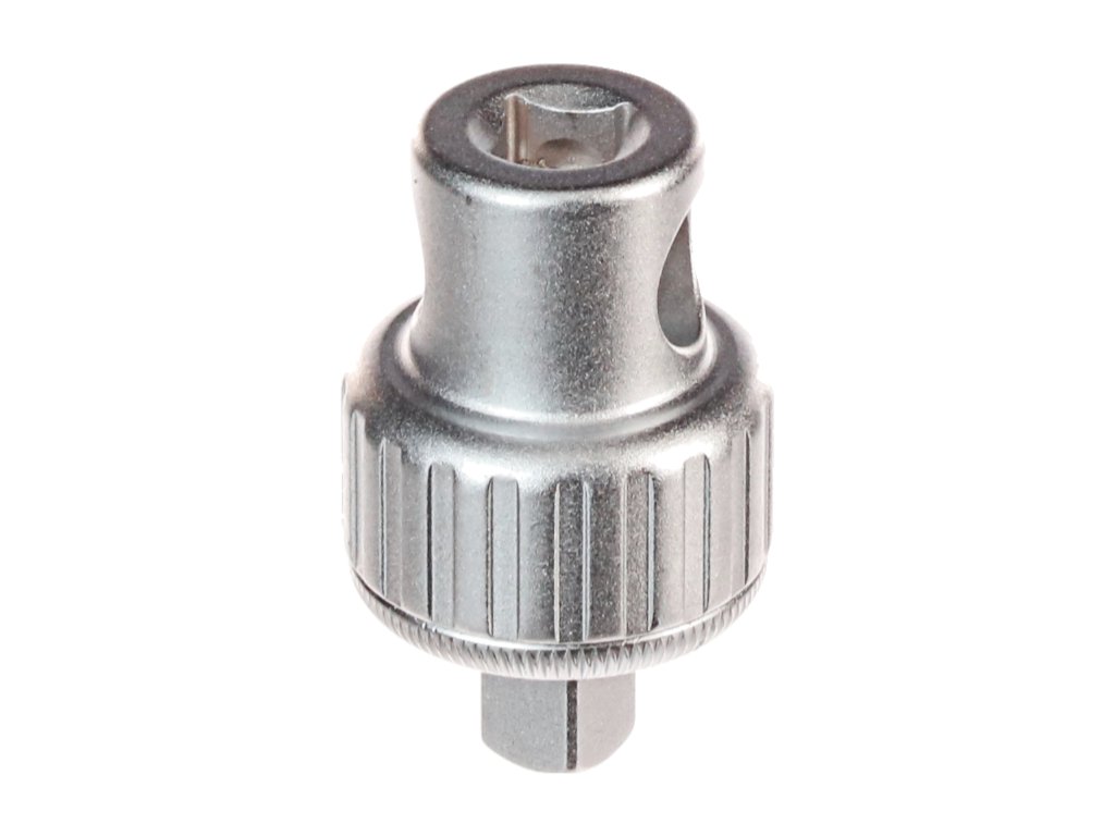 Kleine, kompakte Ratsche aus CrV-Stahl, geeignet für weniger zugängliche Stellen. Festziehen mit Hand, Vierkant oder Stahlstange möglich. Abmessungen: Ø 34x56 mm. Links- und Rechtslauf umschaltbar. Öffnung für die Stahlstange im Adapter ø12,5 mm.