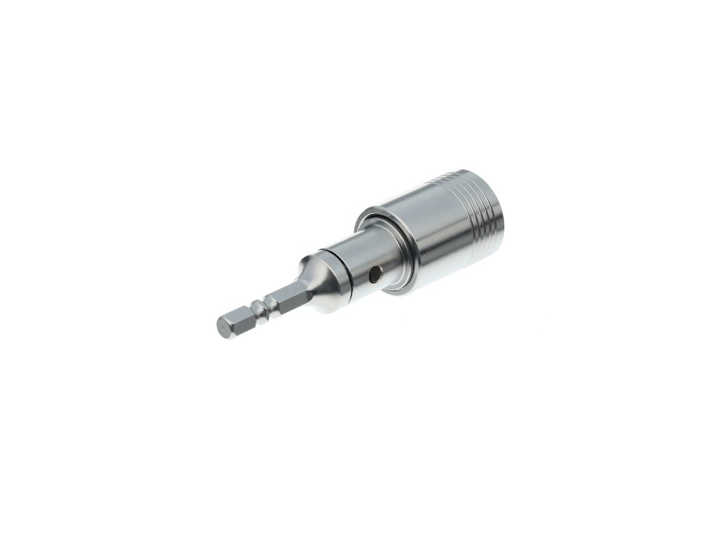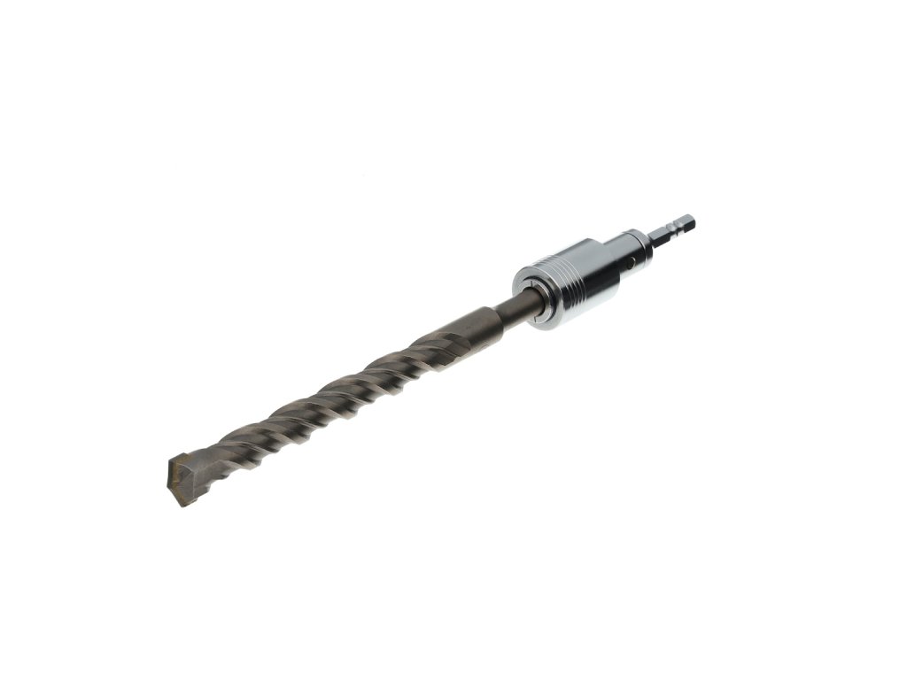 Sechskantschaft 1/4" (6,35 mm), Öffnung für Bohrer mit SDS-Plus-Aufnahme. Gesamtlänge 91 mm, Durchmesser 21 mm.