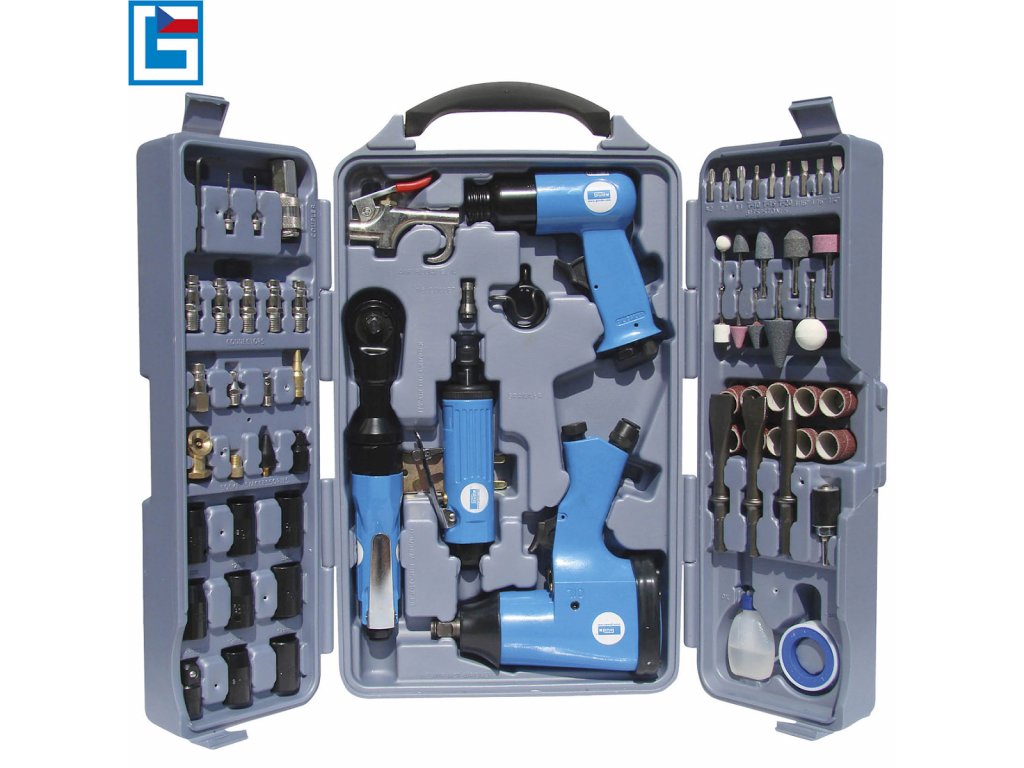71-teiliges Druckluftwerkzeug-Set mit Zubehör zur Grundausstattung der Werkstatt, betrieben mit Druckluft.