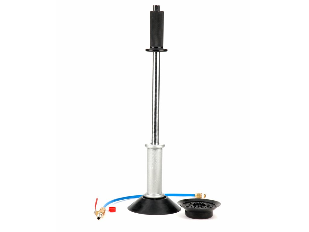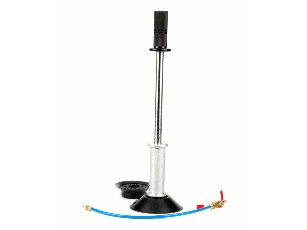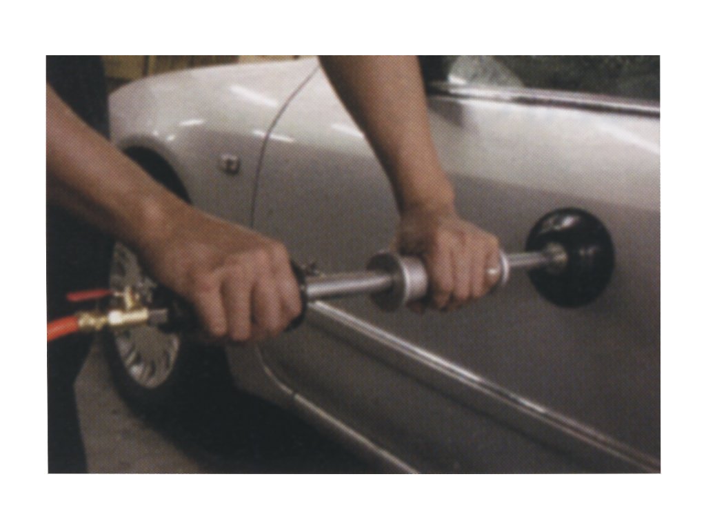 Der reversibeler Hammer mit dem Sauger ist ein unabkömmliches Hilfsmittel beim Ausrichten grober Unebenheiten der Karosserie. Die ständige Haftung des Saugers stellt die Druckluft 6 – 8 bar sicher, die mit einem eingebauten Ejektor Unterdruck erzeugt. Im Satz stehen 2 Stück Sauger Ø 120 und 155 mm zur Verfügung.