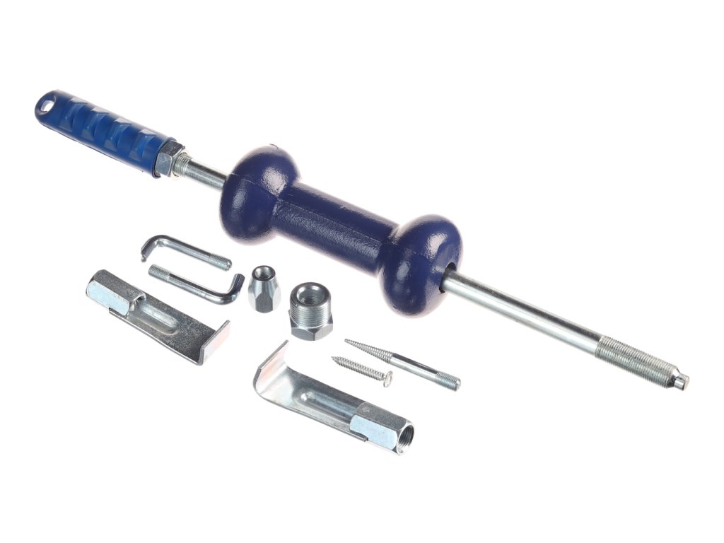 Zum einfachen Herausziehen von verformtem Blech bei Fahrzeugkarosserien. Gleithammer mit einem Gewicht von 2 kg. Im Set enthalten sind 2 Ausziehwerkzeuge mit direktem Anschluss, 4 Werkzeuge zum Anschluss über die mitgelieferte Reduktion und ein Adapter mit Außengewinde.