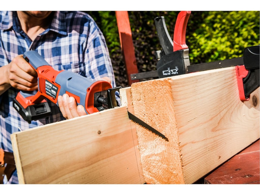 Die Akku-Säbelsäge ist für das Schneiden von Holz, Kunststoff, Metallen und anderen ähnlichen Materialien bei der Arbeit in einer Werkstatt, Garage oder einem Garten konzipiert. Mit dem flexiblen Sägeblatt können Sie nicht nur gerade und gebogene Schnitte ausführen, sondern auch Schnitte an schwer zugänglichen Stellen (in Ecken, entlang der Wand), Baumschnitt. Der Hauptvorteil dieser Säge ist der Akku-Antrieb, der es Ihnen ermöglicht, diese Säge überall hin mitzunehmen, wo Sie mit ihr arbeiten müssen, unabhängig davon, ob eine Stromverteilung vorhanden ist. Die Säge verfügt über eine Sicherheitssperre gegen versehentliches Anspringen und ist mit einem einstellbaren Vorschwenk ausgestattet, den Sie je nach zu schneidendem Material einstellen können. Für normales Arbeiten reichen ein bis zwei 2000 mAh Akkus, die Sie in einem Schnellladegerät schnell aufladen können, für anspruchsvollere oder längere Arbeiten empfehlen wir größere Akkus mit einer Kapazität von 4000 mAh. Der Akku kann in allen Arten von EXTOL SHARE20 V-Werkzeugen verwendet werden und kann dank der verwendeten Li-Ionen-Technologie jederzeit wieder aufgeladen werden, ohne seine Kapazität zu verringern. Der Li-Ionen-Akku verliert durch Selbstentladung sehr langsam Energie und bleibt lange geladen und einsatzbereit.