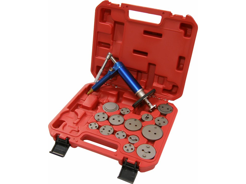 Dient zur Vergrößerung des Raums nach Herausnahme der Bremssegmente durch Abdrücken des Bremszylinderkolbens. Müheloses Abdrücken mit Druckluft, die Anlage ist an der Kolbenstange mit einem Hebel zum Kolbendrehen ausgestattet. Der Koffer beinhaltet außer des Luftdruckmechanismus noch 15 Stützen für die meisten Bremssysteme.