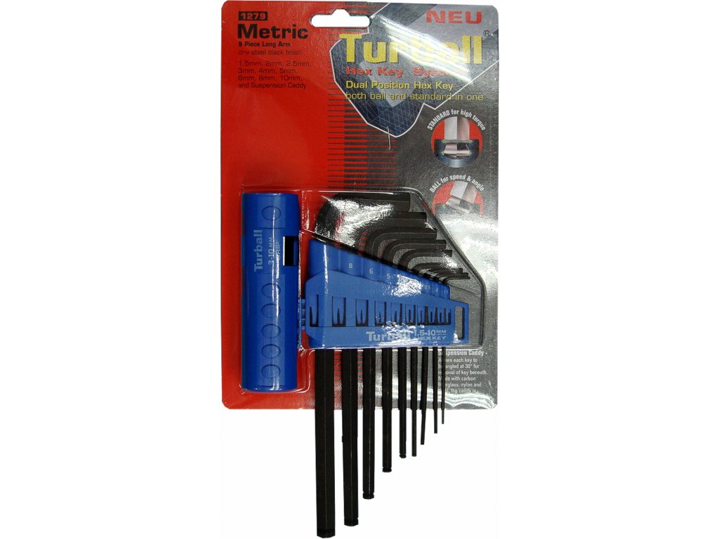 "L"-Inbusschlüsselsatz in Kunststoffkassette, mit abnehmbarem Multifunktionsgriff, ermöglicht 3 Schlüsselstellungen für einen größeren Komfort beim Anfassen. Die aus CrV-Stahl hergestellten Werkzeuge sind mit einer Kugelspitze für schräges Aufsetzen an die Schraube versehen. Die Oberfläche ist geschwärzt. Größe 6HR: 1.5-2-2.5-3-4-5-6-8-10 mm.
