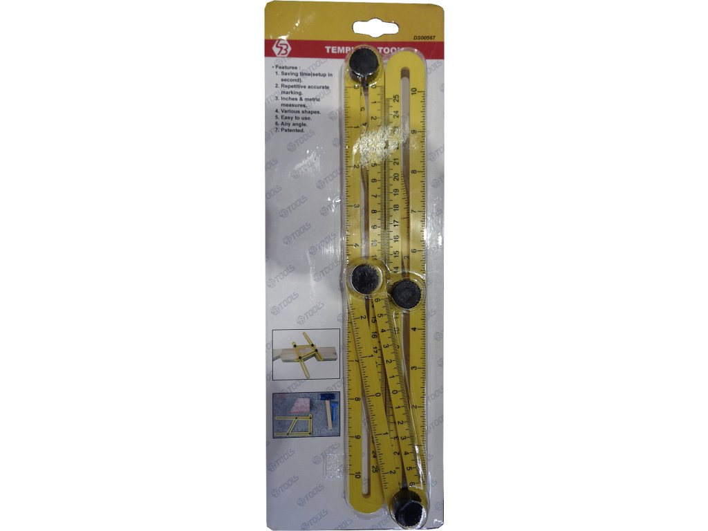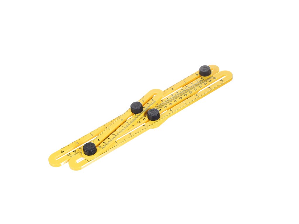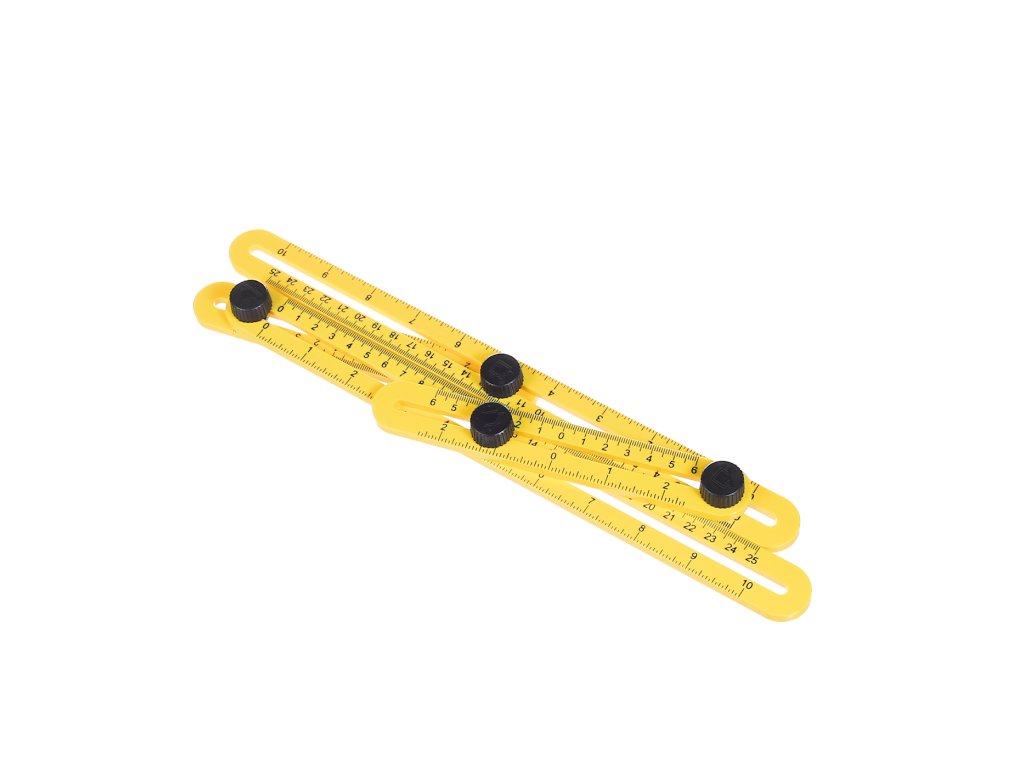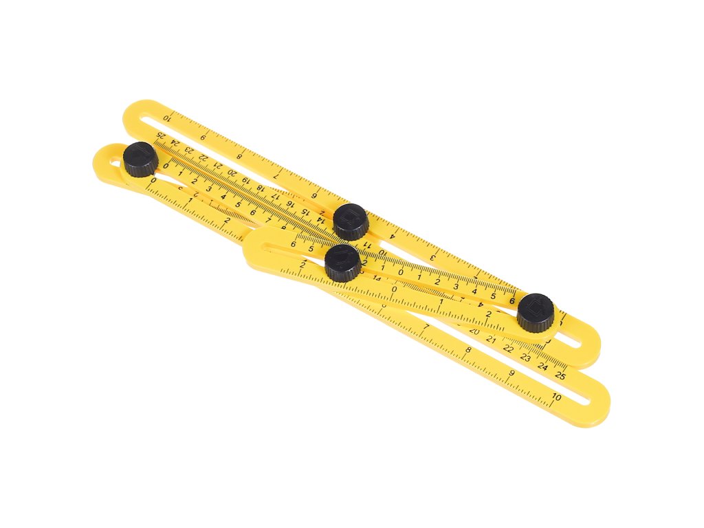 Ein hervorragendes Werkzeug zur Übertragung und zur Konstruktion von komplizierteren Formen und Winkeln. Geeignet für Bauarbeiten, wie Fußbodenverlegung, Zuschnitt von Dachziegeln, Fliesen usw. Skala in metrischen und Zoll-Einheiten. Aus Kunststoff hergestellt, im Blister verpackt.