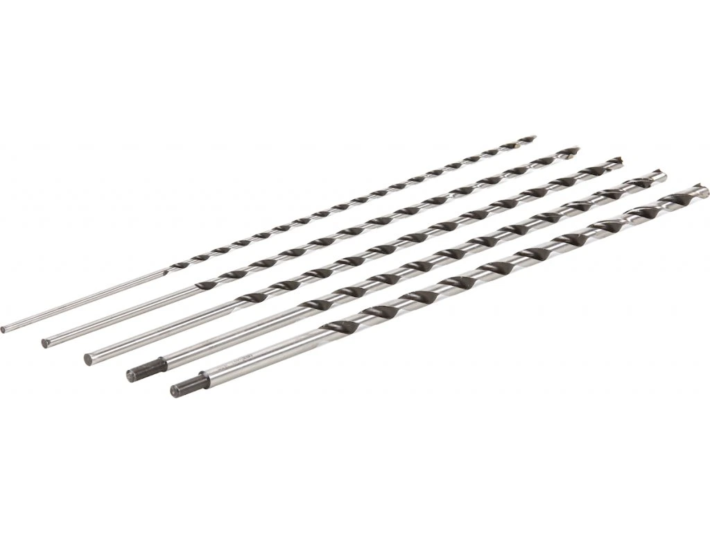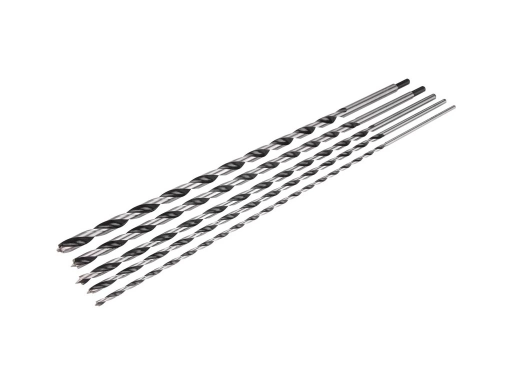 Gesamtlänge 600 mm, Arbeitslänge 450 mm, Durchmesser 6; 8; 10; 12; 14 mm, Durchmesser 12 und 14 mm mit vermindertem Durchmesser des Schaftaufnahmeteils auf 10 mm. Material hochwertiger Kohlenstoffstahl. Zum Bohren ins Holz und in ähnliche nichtspaltende Materiale.