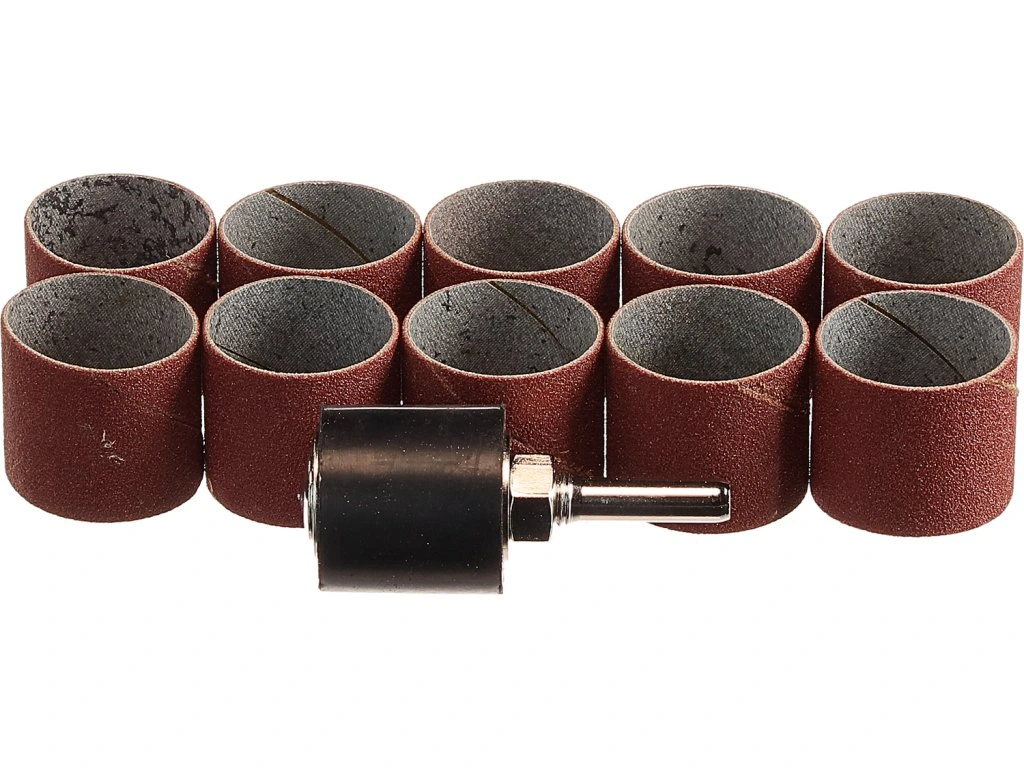 Im Set enthalten sind 10 St. Schleifbüchsen mit einem Durchmesser von 25 mm und ein Gummiträger mit Stiel. Besonders geeignet zum Formschleifen von Holz.