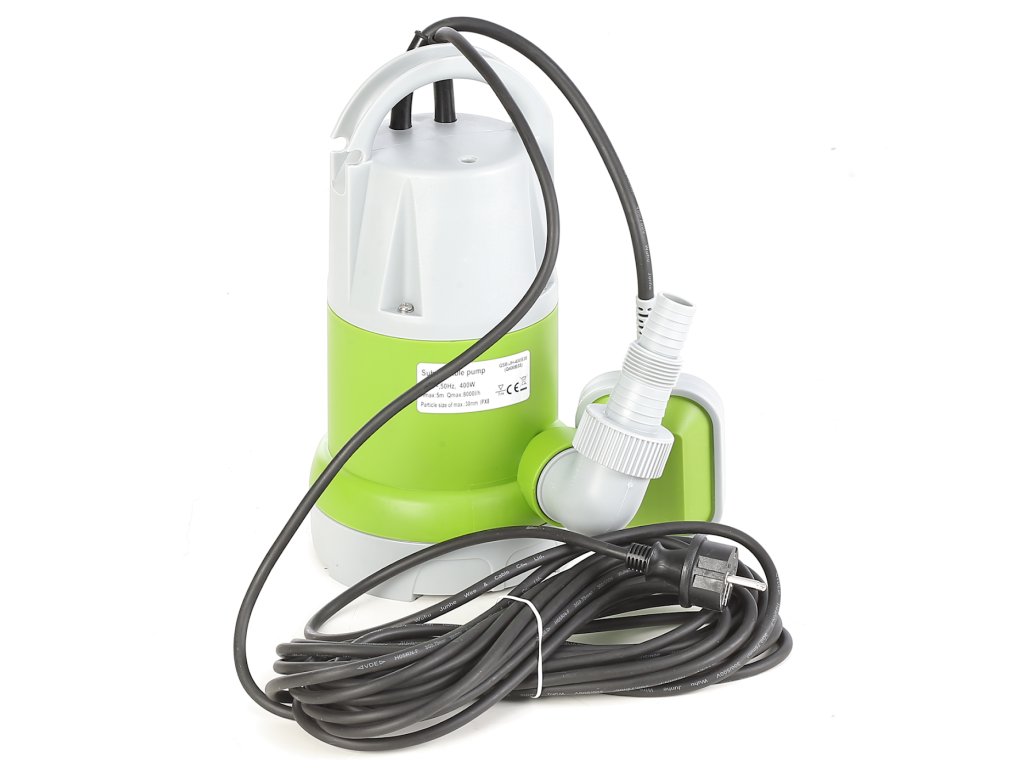 Das Gerät ist zum Pumpen von Regenwasser, Süß- und Schwimmbeckenwasser mit mechanischen Schmutzpartikeln mit einer Größe von max. 30 mm bestimmt. Versorgung 230 V/50Hz, Schutzart IPX8, max. Förderhöhe 5 m, Tauchtiefe max. 7 m, Durchfluss 8.000 l/h. Max. Wassertemperatur 35°C, Schlauchanschluss G11/4", G1", G1/2", max. Druck 0,5 bar, Kabellänge 10 m.