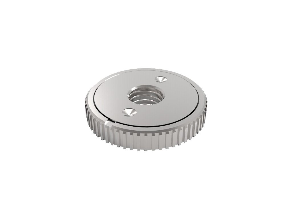 Erleichtert und beschleunigt den sicheren Wechsel von Schneid- und Schleifscheiben mit Durchmesser 115 – 225 mm bei einem Winkelschleifer mit Spindelgewinde M14. Anziehen und Lösen erfolgt manuell, kein Schlüssel wird benötigt. Im Falle einer Klemmung können die Bohrungen in der Mutterfront verwendet werden. Die Schnellspannmutter dient zur Arbeitseffektivitätserhöhung und verhindert gleichzeitig das Überziehen und die damit verbundene Werkzeugverformung.