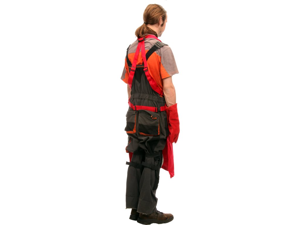 Damast-Schürze, beständig gegen Durchbrennen, Abmessungen 900 × 600 mm, Gewicht 350 g. 1 Paar Handschuhe 350 mm lang, Größe 11, aus weichem Rindleder, Baumvolleinlage mit Kevlar-Fäden und 1 Paar Knieschonern mit Klettverschluss.