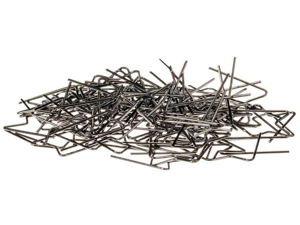 Zum Schweißen von Kunststoffeckteilen und deren außenseitigen Versteifung. "M"-Form aus Draht, Durchmesser 0,8 mm. Für das Verbindungsgerät für Kunststoff Best.-Nr. 19272 bestimmt. Die Verpackung beinhaltet 100 St.