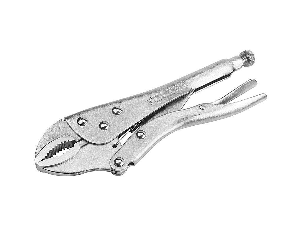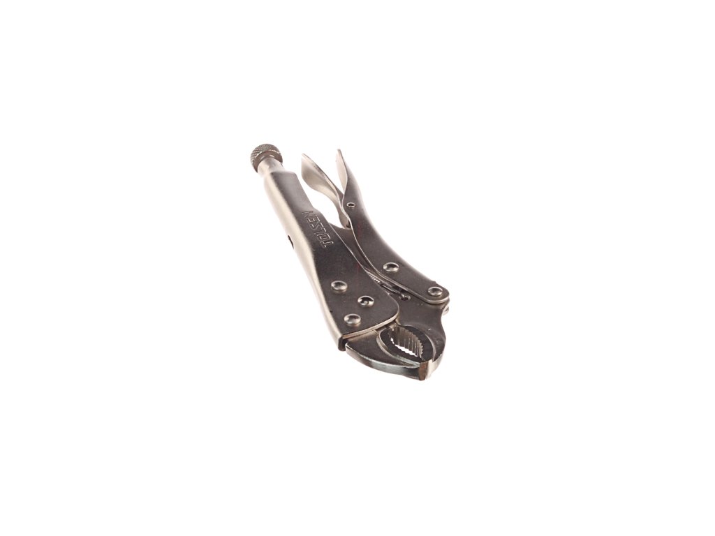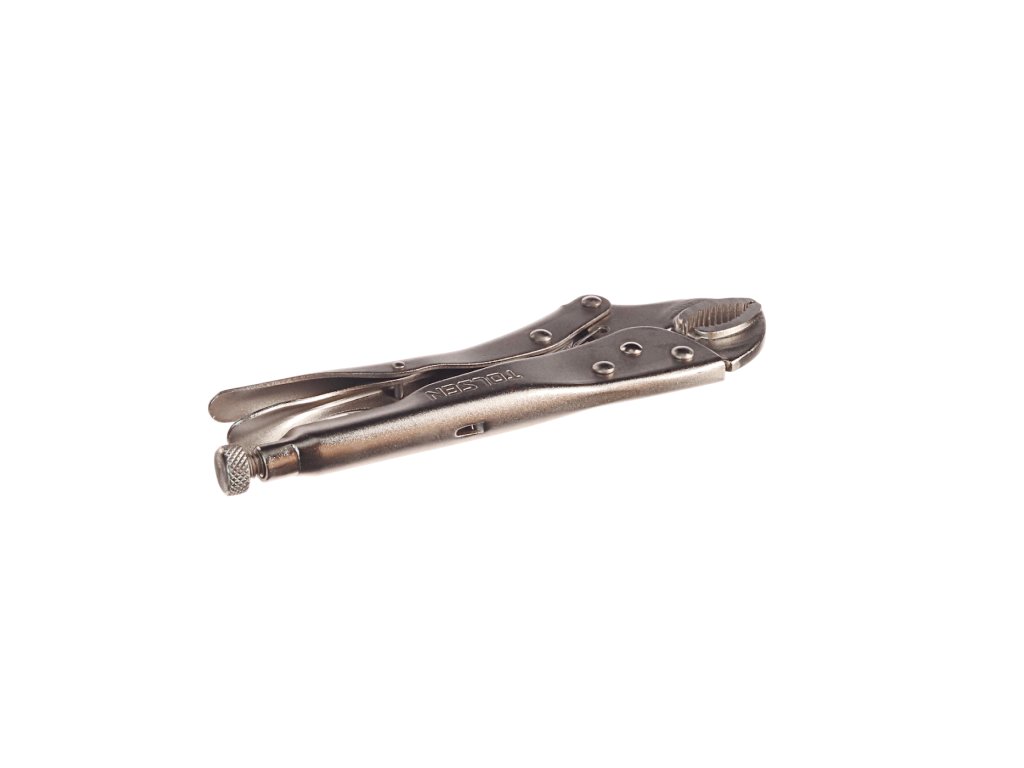 Praktische selbstsichernde Zange. Zangen-Gesamtlänge 250 mm, maximale Backenöffnung 50 mm. Die Backenöffnung in der verriegelten Position ist einstellbar von 0-30 mm.