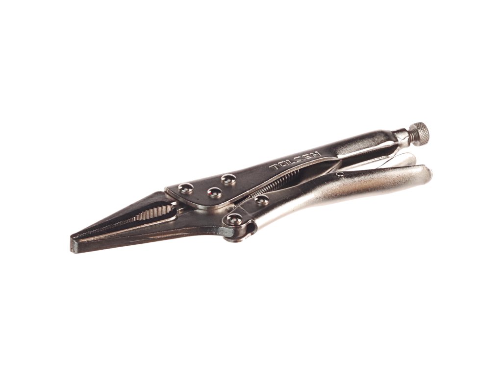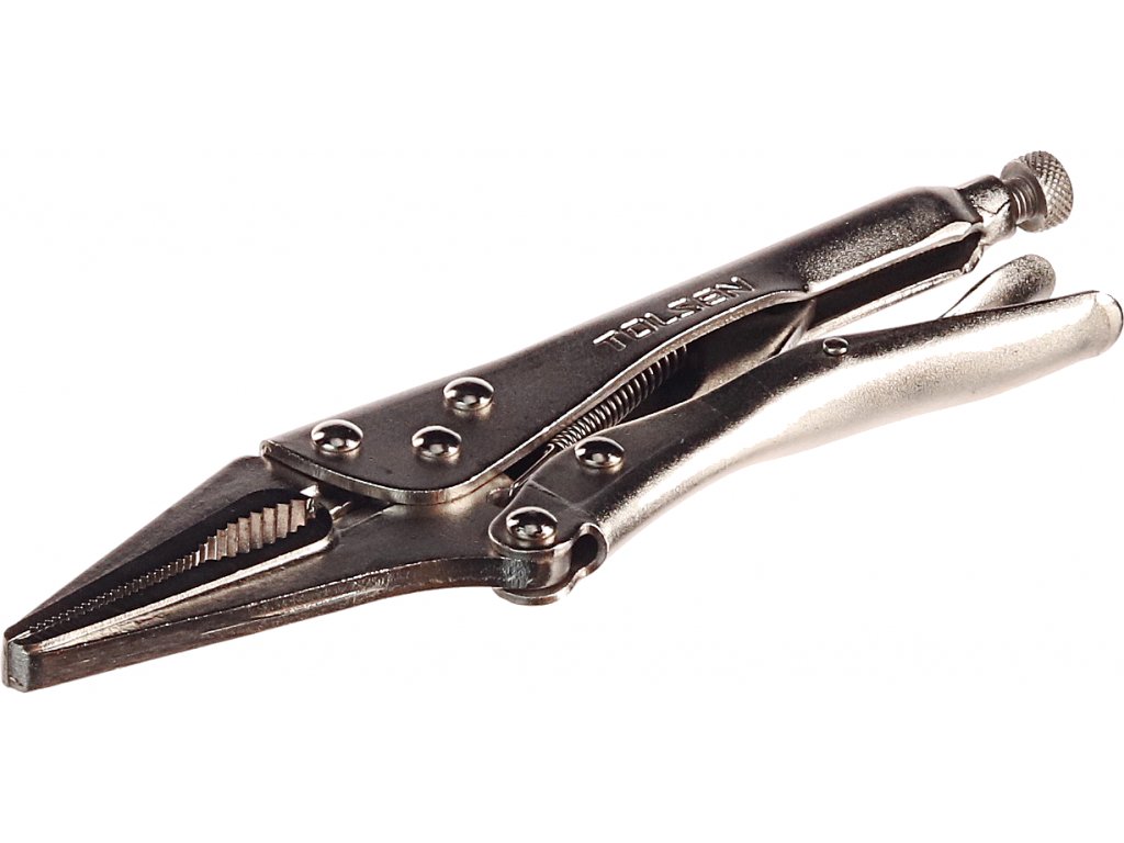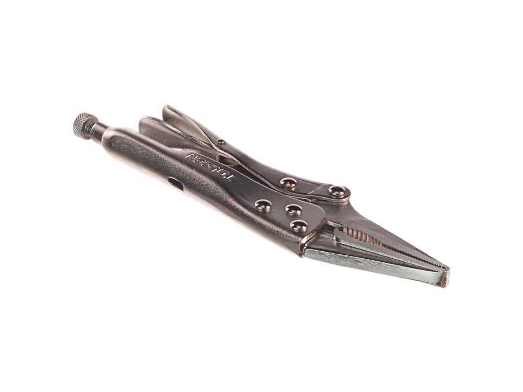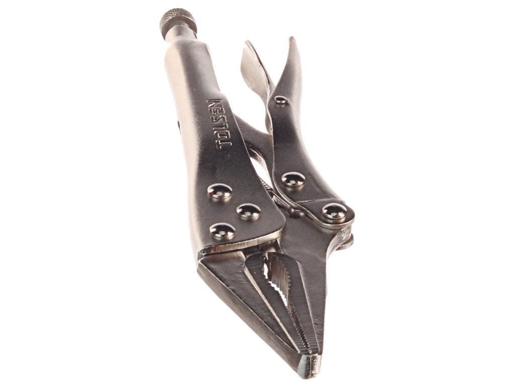 Praktische selbstsichernde Zange. Zangen-Gesamtlänge 230 mm, Länge 60 mm, maximale Backenöffnung 55 mm.