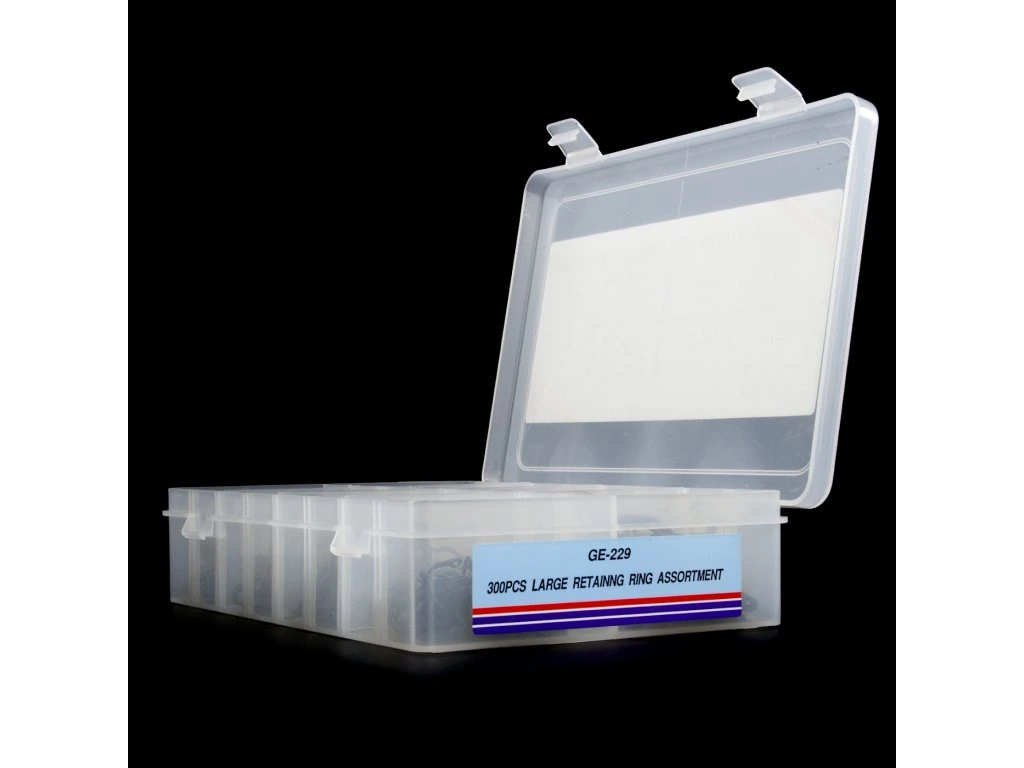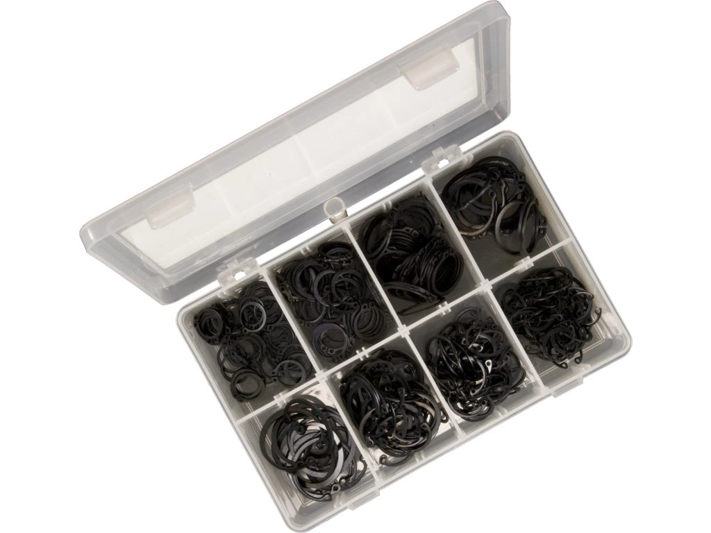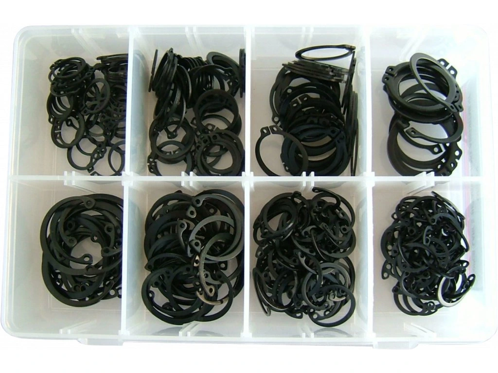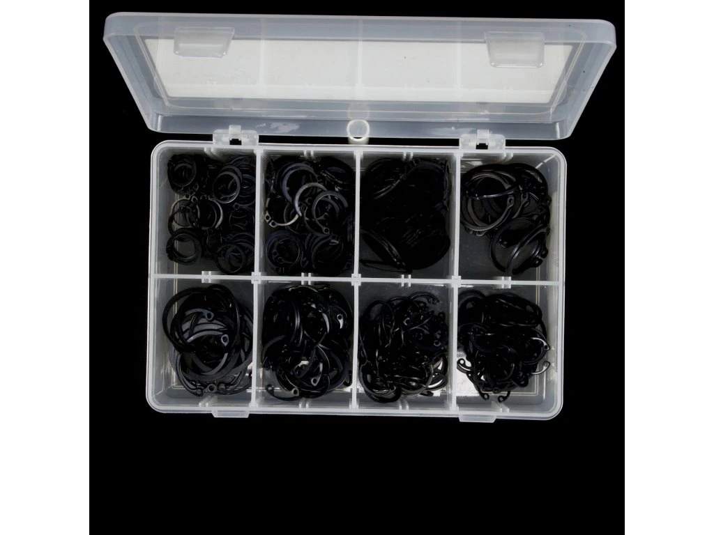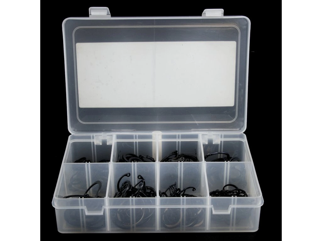 Kombiniertes Set von Außen- und Innen-Seegerringen, 300 St., Außendurchmesser 16, 19, 25, 30 mm, innen 19, 22, 30, 35 mm, in einer Kunststoffbox verpackt.