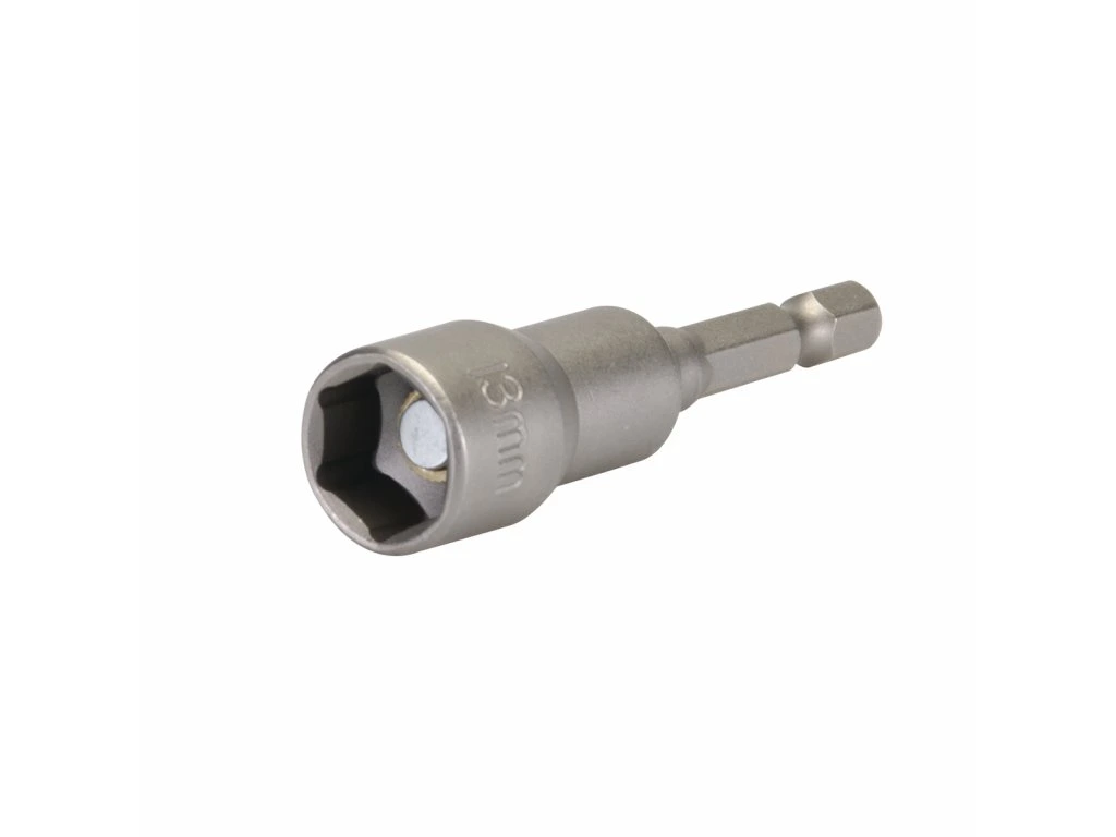 Chrom-Vanadium-Stahl CrV. Verwendung mit Schraubbohrern zum Anziehen von Schrauben und Muttern. Magnet zur sicheren Fixierung der Mutter. Für Schrauben und Muttern mit Sechskantkopf. 1/4" (6,35 mm) Sechskantschaft 25 mm lang.