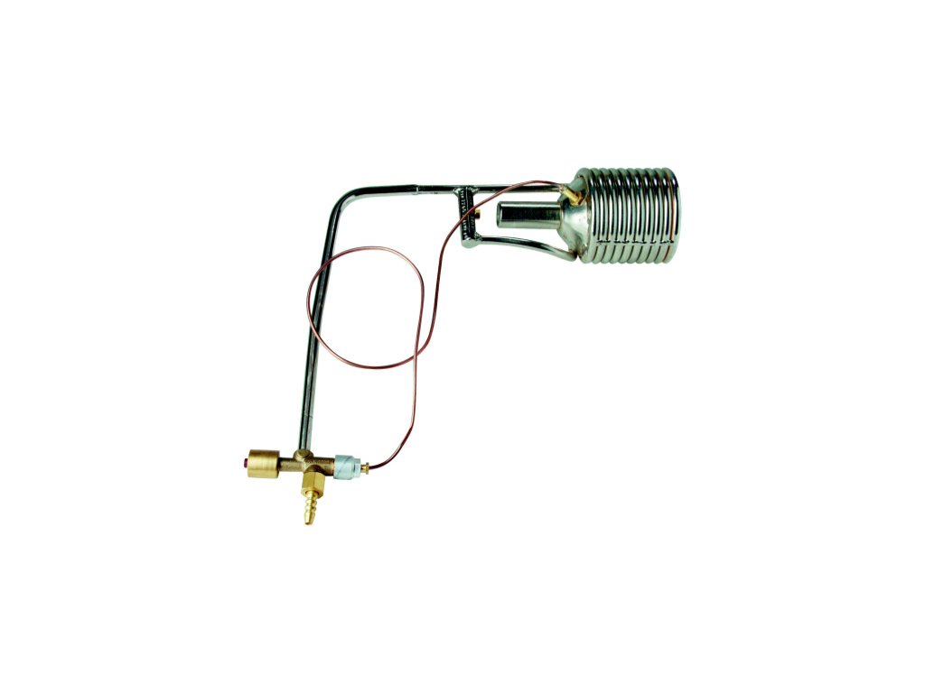 Ein spezieller Brenner mit sehr hoher Leistung, der mit einem Magnetsicherheitsventil ausgestattet ist. Es kann in geschlossenen Geräten installiert werden. Er wird über einen Druckminderer an eine Propan-Butan-Flasche oder an ein festes Verteilungssystem angeschlossen. Der Regler ist nicht im Lieferumfang enthalten.