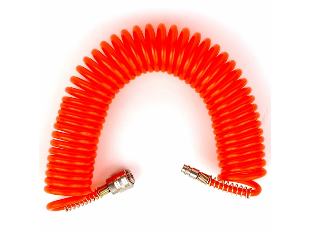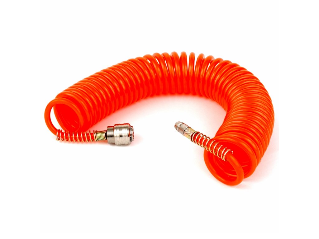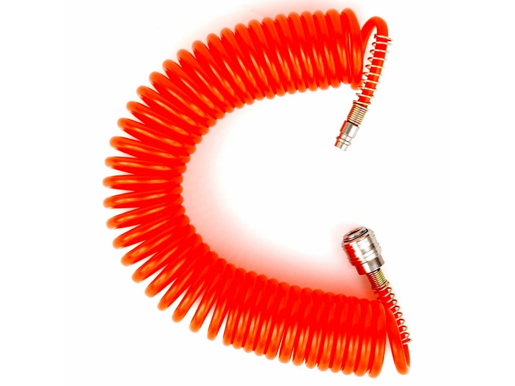 Schlauchdurchmesser außen/innen: 8/6 mm. Abmessungen der Spirale im gerollten Zustand: Durchmesser 90 mm, Länge 310 mm. Gestreckte Länge 7,5 m.