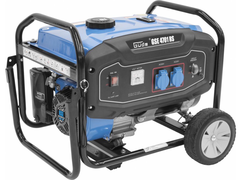Stromgenerator: einphasig, synchron; AVR (elektronische Ausgangsspannungsregelung), Voltmeter, Sicherungsautomat gegen Überlastung des Ausgangskreises.