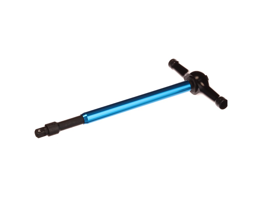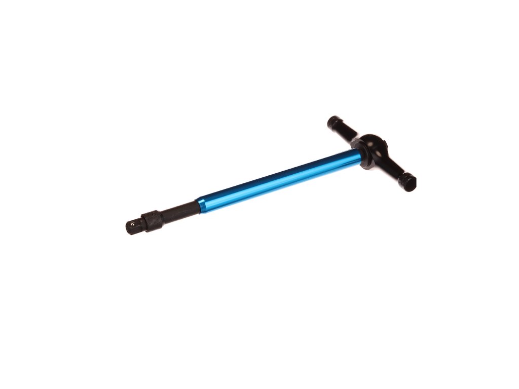Geeignet für schwer zugängliche Stellen, mit Ratsche zur einfacheren Handhabung. Schloss zum sicheren Einspannen der Bits. Gehäuse aus Aluminium, Gesamtlänge 270 mm.