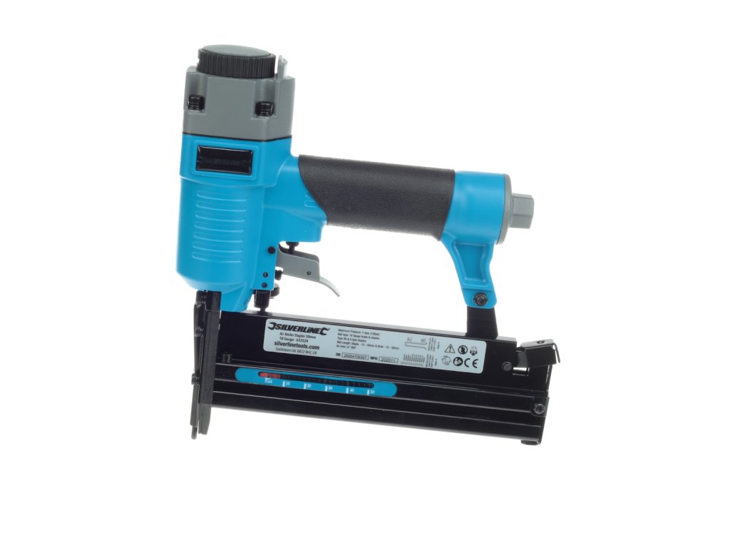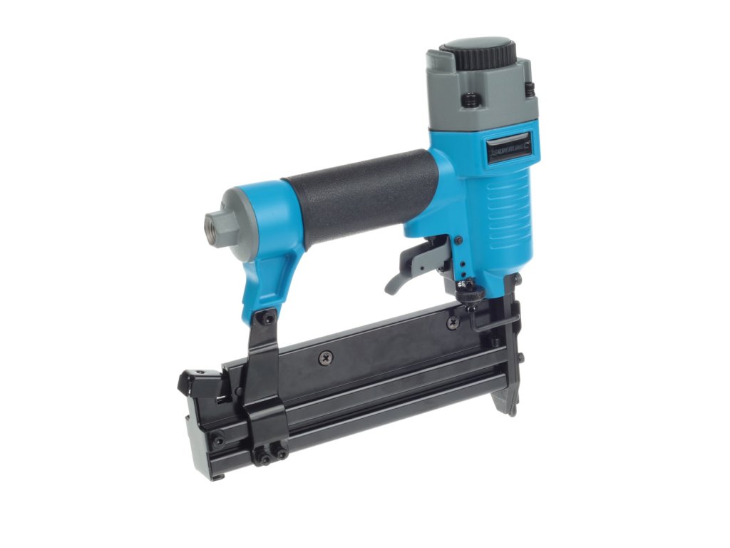 Leichtes Aluminiumgehäuse mit weichem Gummigriff. Ideal für Polsterungen, Verkleidungen, Schrankmontage und andere Handwerksarbeiten. Ein Sicherheitsauslöser verhindert ein versehentliches Starten. Geeignet für 18 Gauge Brad Nägel 10 – 50 mm und 18 Gauge Klammern mit einer Länge von 13 – 40 mm. Betriebsdruck 4 – 7 bar (60 – 100 psi). Lieferung mit 1/4" Schnellkupplung.