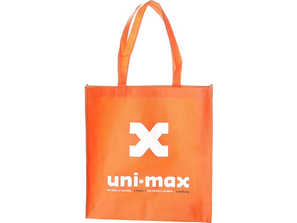 Solide Tasche mit Logo aus schwarzem Vlies, Maße 400 × 370 × 100 mm, kann auch als Schulter-Tasche getragen werden.