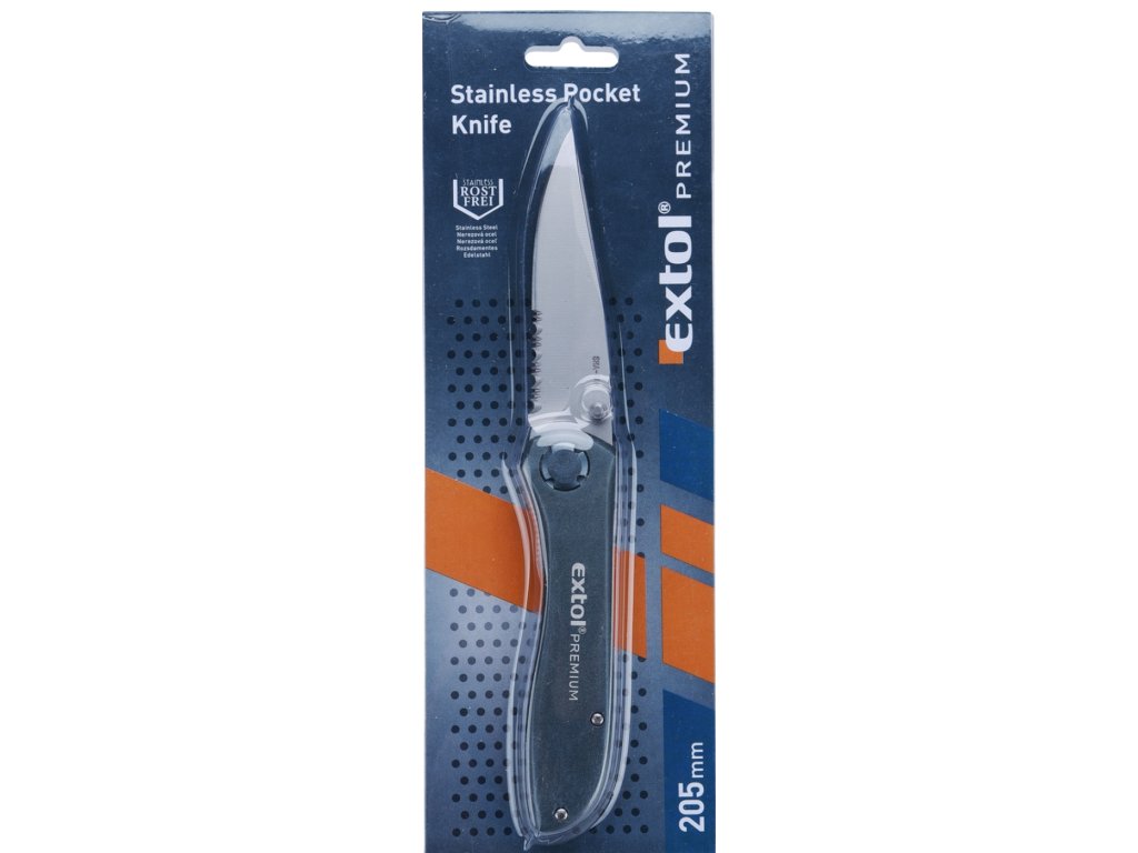 Hochwertiger Messer mit Klinge mit spezieller Oberflächenbehandlung SHA-RAY; Schneide teilweise zahnig für einfacheres Schneiden von verschiedenen Materialtypen und kann auch als eine Säge dienen; Griff aus Alu-Legierung. Länge geöffnet 205 mm, Länge geklappt 115 mm.