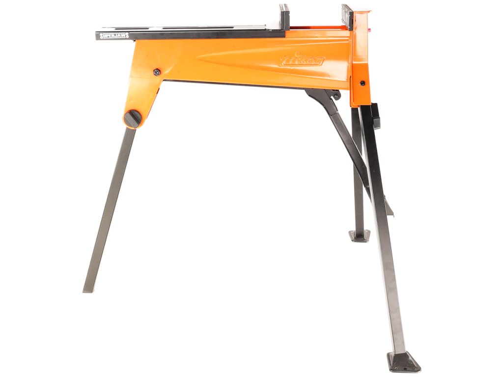 Robuste pulverbeschichtete Metallkonstruktion für lange Lebensdauer. Schließkraft bis zu 1000 kg. Spannbereich 0 - 955 mm. Die Fußbedienung der Klemmung ermöglicht die Arbeit mit beiden Händen. Extra breite Schraubstockbasis für hohe Stabilität.