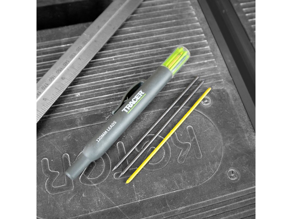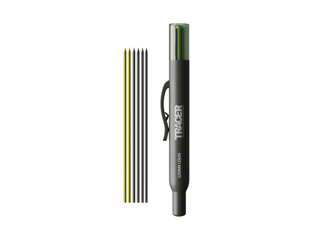 Auswechselbare Universalminen für den Zimmermannsbleistift ADP2 der britischen Marke TRACER®. Die robuste Verpackung schützt Ihre Wechselklammern vor Bruch. 4 schwarze und 2 gelbe Bänder. Insgesamt 6 Stück in einer Packung. Härte 2B.
