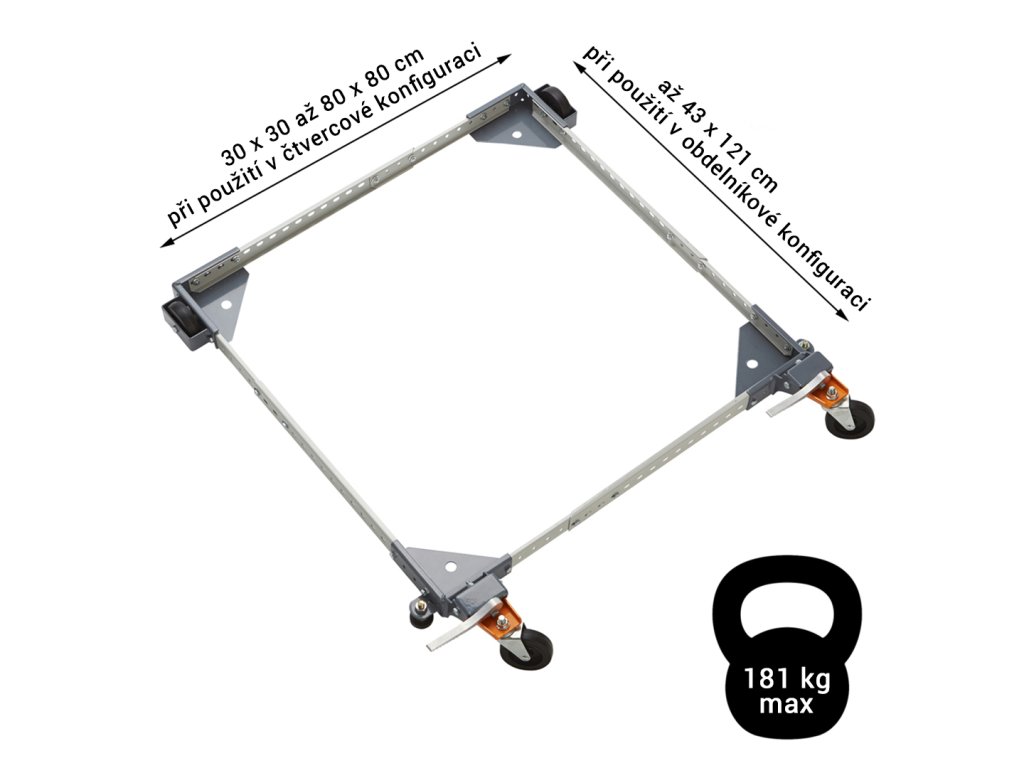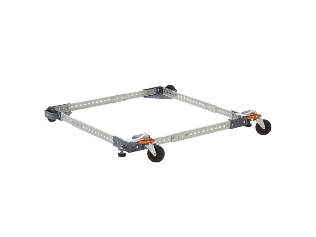 Universeller mobiler Ständer der Marke BORA, mit dem Sie Ihre nicht mobilen Werkzeuge in der Werkstatt bewegen können. Das BORA Untergestell ist stufenlos auf eine quadratische Form von 30 x 30 cm bis 81 x 81 cm verstellbar. Es kann auch zu einem Rechteck mit den maximalen Abmessungen von 43 x 122 cm gefaltet werden. Es hat ein sehr niedriges Profil - es erhöht die Höhe Ihres nicht mobilen Werkzeugs um weniger als 3 cm. Abschließbare Hebel und Hartgummiräder halten die Basis fest an Ort und Stelle, bis Sie sie bewegen und die Räder einfach lösen müssen. Der Sockel ist auch kompatibel mit Werkzeugschränken oder Tresoren mit einem maximalen Gewicht von 180 kg. Aus Stahl gemacht.